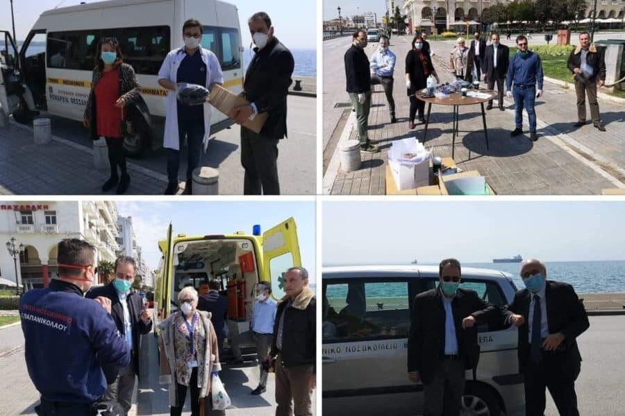 Συγκεκριμένα,  παρέλαβαν ασπίδες προσώπου και μάσκες εκπρόσωποι των νοσηλευτικών ιδρυμάτων ΑΧΕΠΑ, Γ. Παπανικολάου, Άγιος Δημήτριος και Ιπποκράτειο.