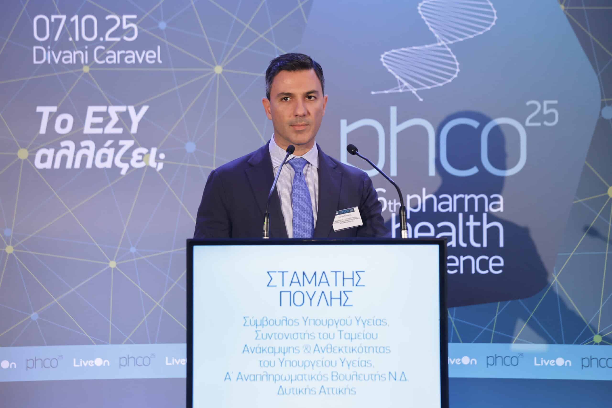 Στην ομιλία του με θέμα «Η πορεία των έργων υγείας του Ταμείου Ανάκαμψης» Σταμάτης Πουλής, Σύμβουλος Υπουργού Υγείας, Συντονιστής του Ταμείου Ανάκαμψης & Ανθεκτικότητας του Υπουργείου Υγείας & Α΄ Αναπληρωματικός Βουλευτής Ν.Δ. Δυτικής Αττικής ανέφερε ότι «Το ΕΣΥ, εισέρχεται σε μια νέα εποχή μετασχηματισμού, με τη στήριξη του Ταμείου Ανάκαμψης και Ανθεκτικότητας, επενδύοντας σε υπηρεσίες υγείας πιο σύγχρονες, ανθεκτικές και ανθρωποκεντρικές. Ο σχεδιασμός του, βασίζεται σε τέσσερις βασικούς πυλώνες μεταρρύθμισης». Ο κ. Πουλής εξήγησε ότι ο πρώτος πυλώνας αφορά την ενδυνάμωση των πολιτών, με στόχο την ευκολότερη πλοήγηση στο σύστημα υγείας, την άμεση πρόσβαση στο ιατρικό ιστορικό, την προσωποποιημένη φροντίδα και την επιστημονική ενημέρωση. Στα έργα περιλαμβάνονται η νέα ενιαία γραμμή υγείας «1566», ο Εθνικός Ηλεκτρονικός Φάκελος Υγείας και το Εθνικό πρόγραμμα πρόληψης το οποίο υλοποιείται μέσω των δωρεάν εξετάσεων. Ο δεύτερος πυλώνας επικεντρώνεται, στην προσβάσιμη και ποιοτική υγεία, με στόχο την εξάλειψη ανισοτήτων, τη μείωση αναμονών και τη γεφύρωση γεωγραφικών αποστάσεων. Εδώ εντάσσονται το Εθνικό Δίκτυο Τηλεϊατρικής, το Ενιαίο Πληροφοριακό Σύστημα Ενημέρωσης πολιτών για εφημερεύοντα νοσοκομεία και αναμονές («βραχιολάκι»), οι ανακαινίσεις και αναβαθμίσεις Νοσοκομείων και Κέντρων Υγείας, καθώς και η κατ’ οίκον νοσηλεία ασθενών. Ο τρίτος πυλώνας αφορά την ψηφιακή ετοιμότητα, με στόχο την ενίσχυση της αποδοτικότητας του ΕΣΥ, την ενδυνάμωση των επαγγελματιών υγείας και τη διασύνδεση κρίσιμων φορέων του ΕΣΥ. Τα έργα περιλαμβάνουν την αξιολόγηση των νοσοκομείων από τους πολίτες, τον ψηφιακό μετασχηματισμό της περίθαλψης ογκολογικών ασθενών και το σύστημα ενιαίας λίστας χειρουργείων. Ο τέταρτος πυλώνας εστιάζει στην ανθεκτική υγεία, δίνοντας έμφαση στην προληπτική διαχείριση κινδύνων και τον ολιστικό στρατηγικό σχεδιασμό. Στα έργα περιλαμβάνονται, η αξιοποίηση δεδομένων υγείας («Health monitoring»), οι οργανωτικές μεταρρυθμίσεις και το εργαλείο DRGs για τον εξορθολογισμό και τη διαχείριση των νοσοκομείων».