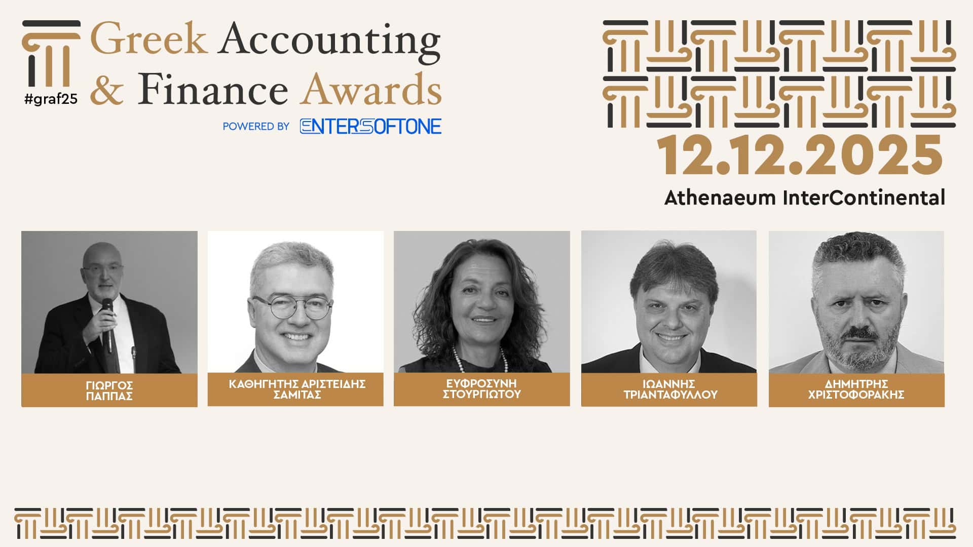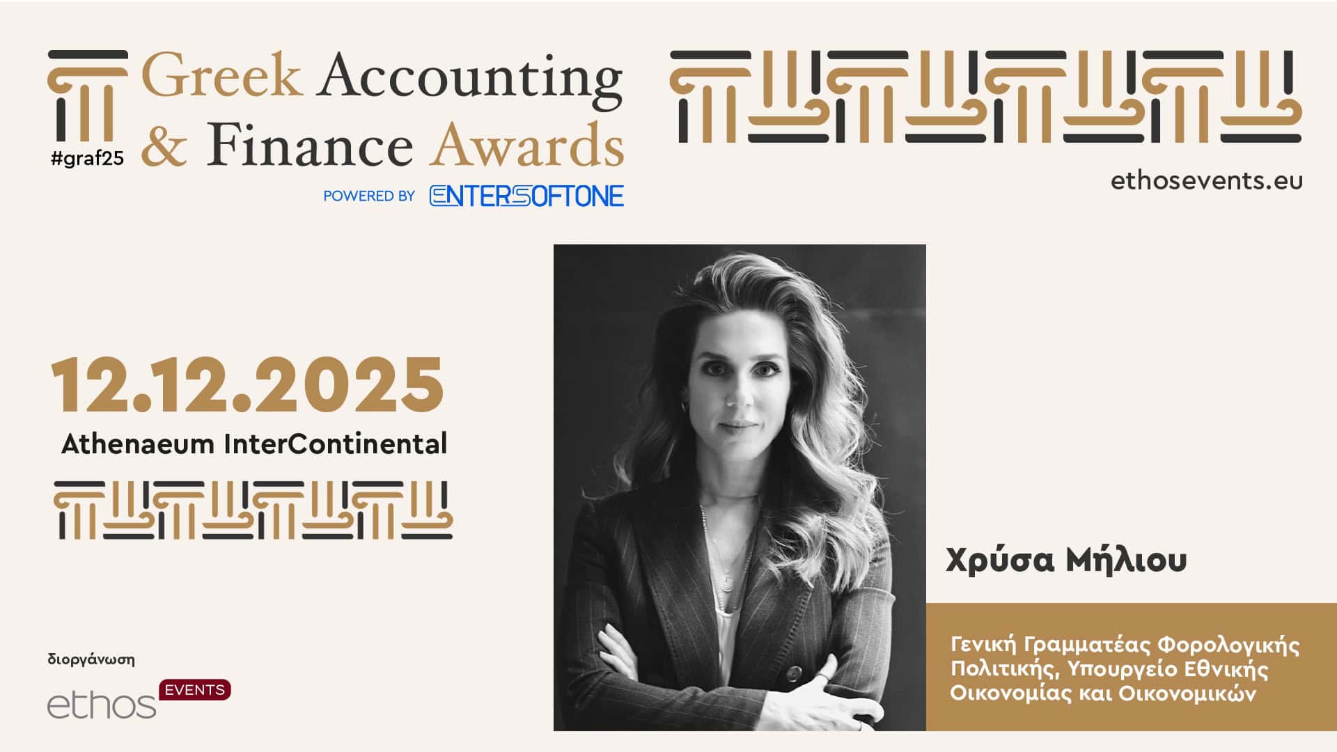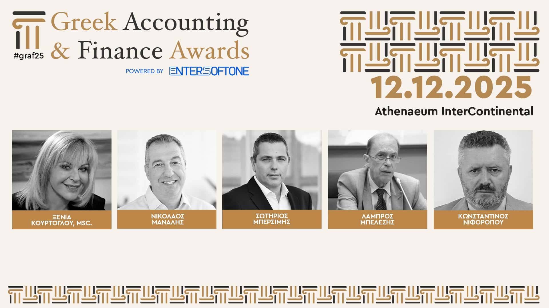 Η λαμπερή τελετή των Greek Accounting & Finance Awards 2025 powered by ENTERSOFTONE θα διεξαχθεί την Παρασκευή 12 Δεκεμβρίου στο ξενοδοχείο Athenaeum InterContinental με φυσική παρουσία, καθώς και με παράλληλη online μετάδοση από το LiveOn Expo Complex, το καινοτόμο 3D εκθεσιακό και συνεδριακό κέντρο της LiveOn, της ψηφιακής πλατφόρμας Επιχειρηματικής Επικοινωνίας και Εκδηλώσεων.