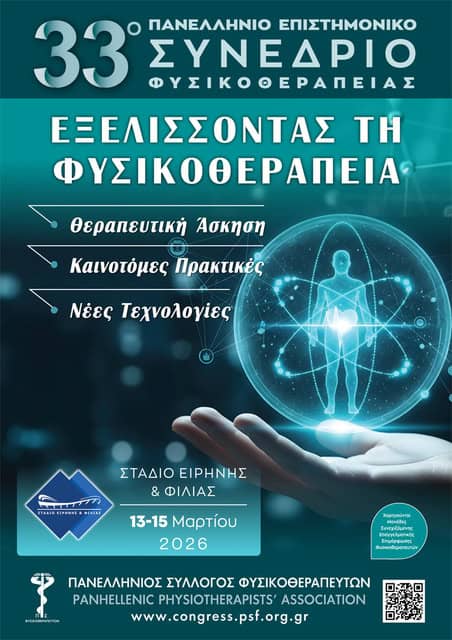 Η φυσικοθεραπευτική κοινότητα της χώρας προετοιμάζεται για το κορυφαίο επιστημονικό γεγονός του κλάδου. Το 33ο Πανελλήνιο Επιστημονικό Συνέδριο Φυσικοθεραπείας θα πραγματοποιηθεί από τις 13 έως τις 15 Μαρτίου 2026 στο Στάδιο Ειρήνης και Φιλίας, συγκεντρώνοντας διακεκριμένους επιστήμονες από την Ελλάδα και το εξωτερικό.