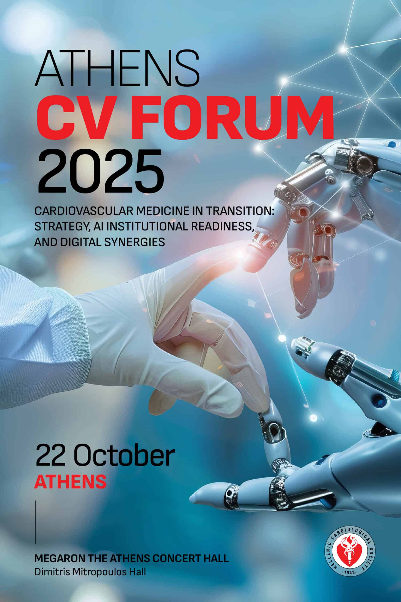 Την Τετάρτη 22 Οκτωβρίου, στην αίθουσα «Δημήτρης Μητρόπουλος» του Μεγάρου Μουσικής, η Ελληνική Καρδιολογική Εταιρεία διοργανώνει το Athens CV Forum 2025, ένα διεθνές επιστημονικό γεγονός με τη συμμετοχή της ηγεσίας της Ευρωπαϊκής Καρδιολογικής Εταιρείας και διακεκριμένων ομιλητών από το εξωτερικό. Το Forum εστιάζει στον ρόλο της ψηφιακής ιατρικής και της τεχνητής νοημοσύνης στη διαμόρφωση της σύγχρονης καρδιοαγγειακής φροντίδας, αναδεικνύοντας τη στρατηγική μετάβαση της καρδιολογίας στη νέα εποχή.