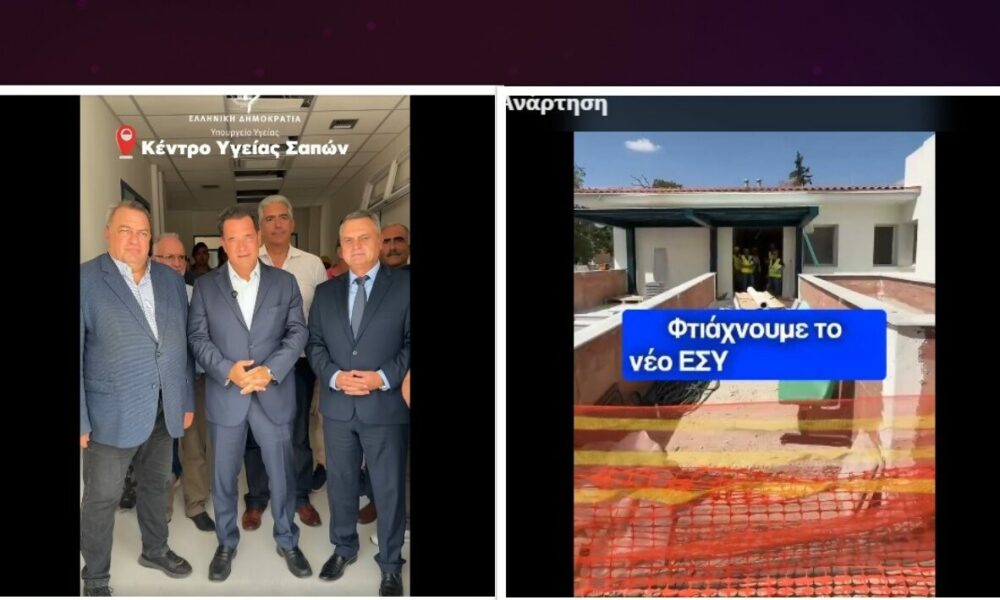 Υπεραμυνόμενος της βελτίωσης του ΕΣΥ ο κ. Γεωργιάδης μοιράστηκε με τους διαδικτυακούς του φίλους το όραμά του για τα νέα εγκαίνια του Κέντρου Υγείας Σαπών με τη συμμετοχή του βουλευτή της ΝΔ Ευριπίδη Στυλιανίδη. Ειδικότερα, κατά την αυτοψία του στον χώρο, ο υπουργός ανακοίνωσε ότι τα εγκαίνια του νέου Κέντρου Υγείας θα πραγματοποιηθούν σε λίγους μήνες, παρουσία του βουλευτή Ροδόπης. Το έργο εκτιμάται ότι αναβαθμίζει σημαντικά τις παρεχόμενες υπηρεσίες πρωτοβάθμιας φροντίδας στην περιοχή, καλύπτοντας ένα πολυετές κενό υποδομών και ενισχύοντας την υγειονομική ασφάλεια των κατοίκων.