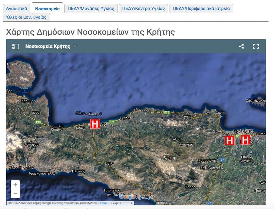 Ειδικότερα, είναι δυνατόν να δει κανείς τον αριθμό των νοσηλευθέντων, τη δυναμικότητα και την πληρότητα του νοσοκομείου, ανά κλινική. Όπως αναφέρεται στη σελίδα του Χάρτη Υγείας, μπορεί κανείς να δει: