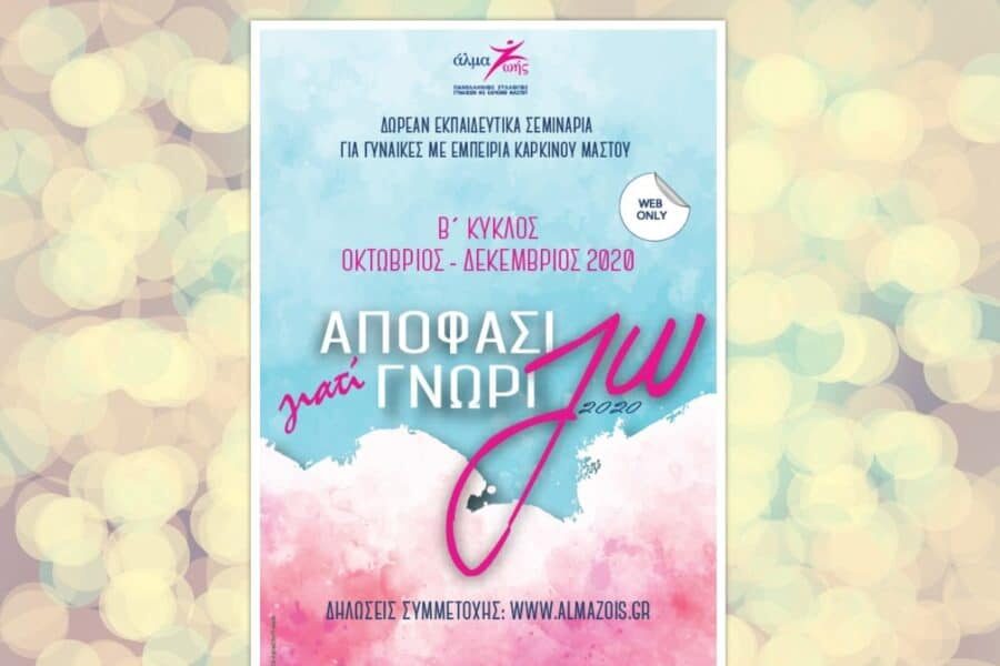 Τον δεύτερο κύκλο εκπαιδευτικών σεμιναρίων με τίτλο «Αποφασίζω γιατί Γνωρίζω» διοργανώνει για το 2020, ο Πανελλήνιος Σύλλογος Γυναικών με Καρκίνο Μαστού «Άλμα Ζωής».
