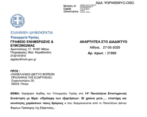 Ακόμη, στην επιστολή αναφέρεται ότι “έχει ενημερωθεί και ο αρμόδιος Υφυπουργός Υγείας κος Βαρτζόπουλος Δημήτριος στην συνάντηση που είχαμε μαζί του στις 29/05/2025, ο οποίος στηρίζει τη διοργάνωση και θα μας τιμήσει με την παρουσία του, απευθύνοντας χαιρετισμό στην εναρκτήρια εκδήλωση. Παράλληλα, στο πλαίσιο της εν λόγω συνάντησης, η οποία πραγματοποιήθηκε σε ένα πολύ θετικό κλίμα, αναδείχθηκαν πεδία συνεργασίας με αφορμή την εφαρμογή της Εθνικής Στρατηγικής για την πρόληψη της βίας και παραβατικότητας ανηλίκων”.