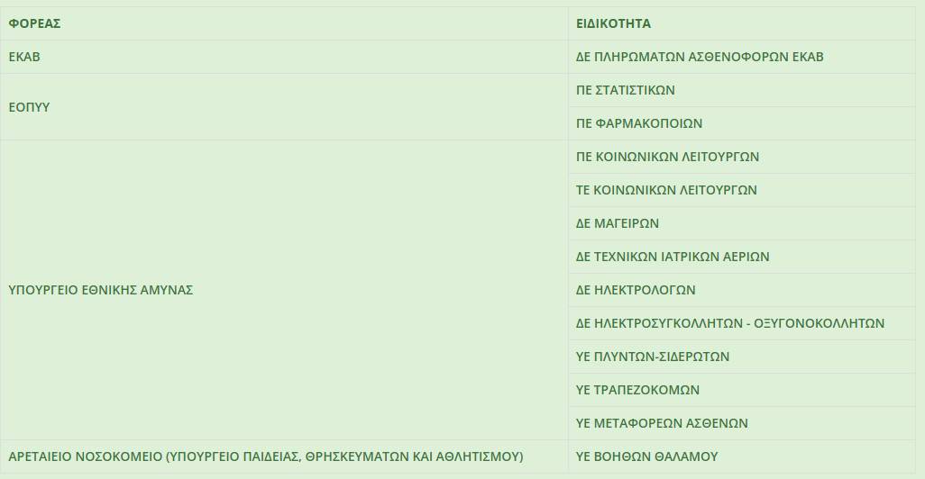 Οι ωφελούμενοι θα απασχοληθούν στον κλάδο ΥΕ Βοηθητικού Υγειονομικού Προσωπικού και συγκεκριμένα στην ειδικότητα ΥΕ Μεταφορέων Ασθενών ή ΥΕ Τραυματιοφορέων, για χρονικό διάστημα 12 μηνών και με ακαθάριστες μηνιαίες αποδοχές έως 1.050 ευρώ. Οι αιτήσεις θα πραγματοποιηθούν μέχρι την Παρασκευή, 28 Φεβρουαρίου και ώρα 15:00.