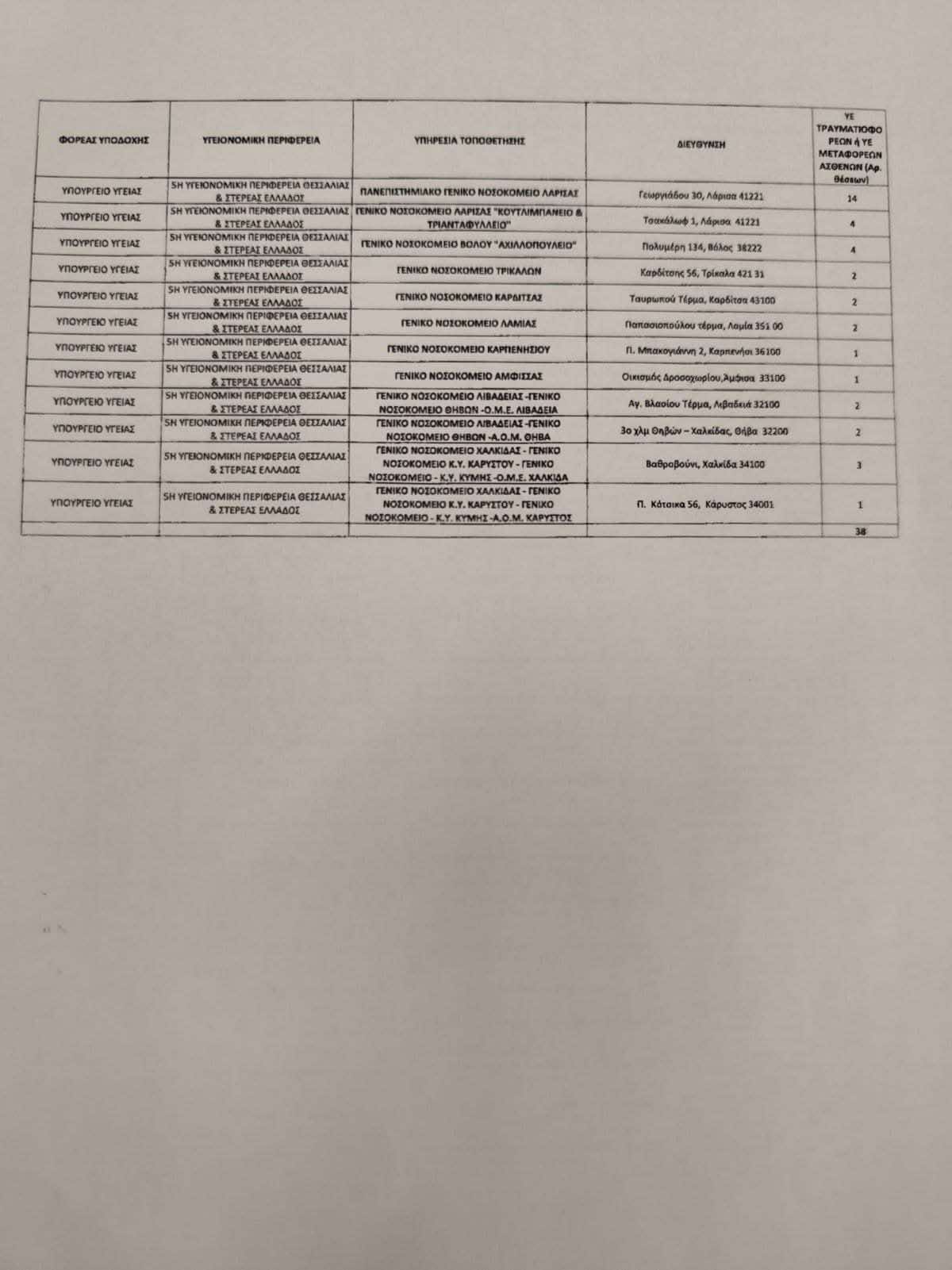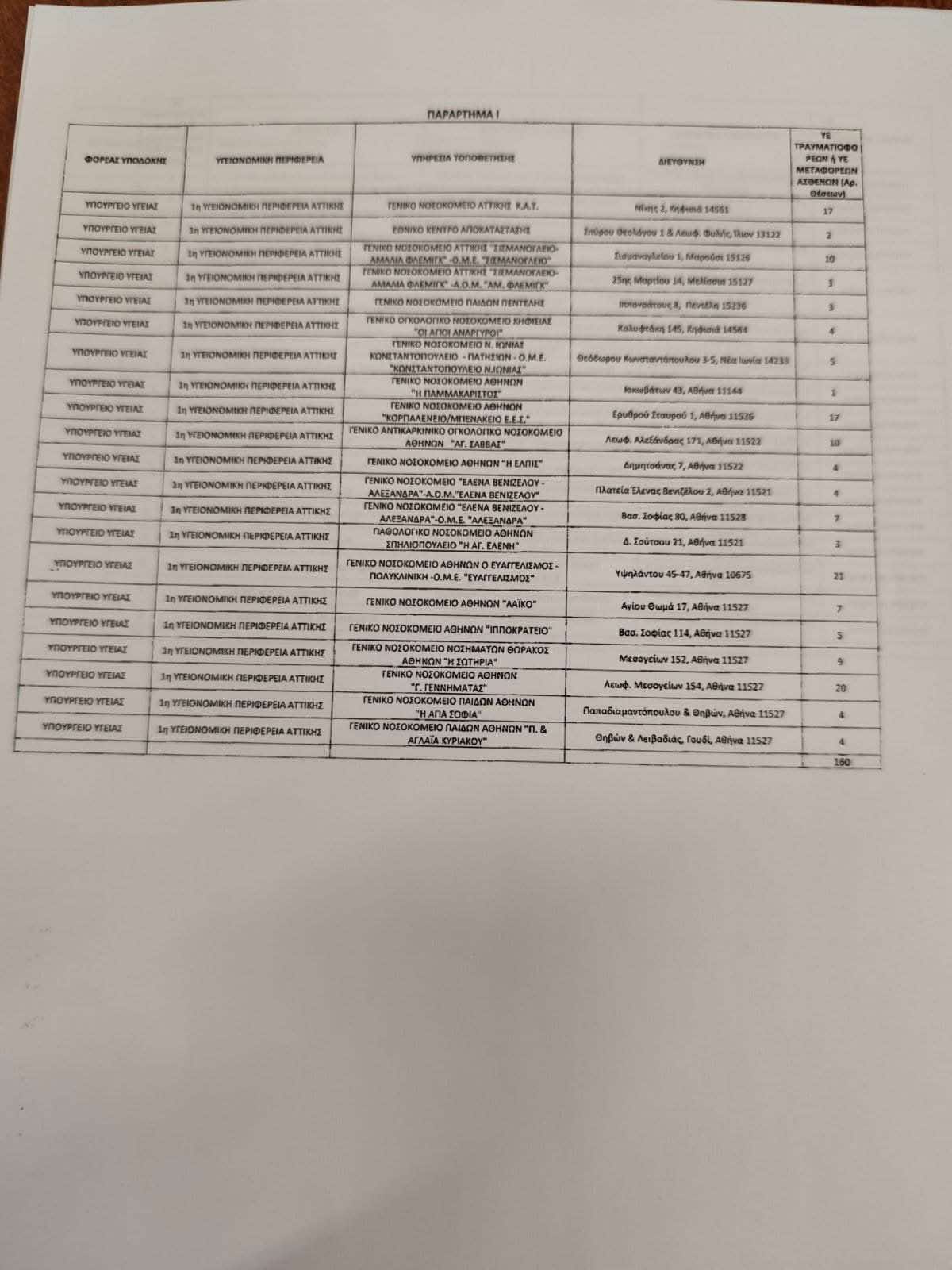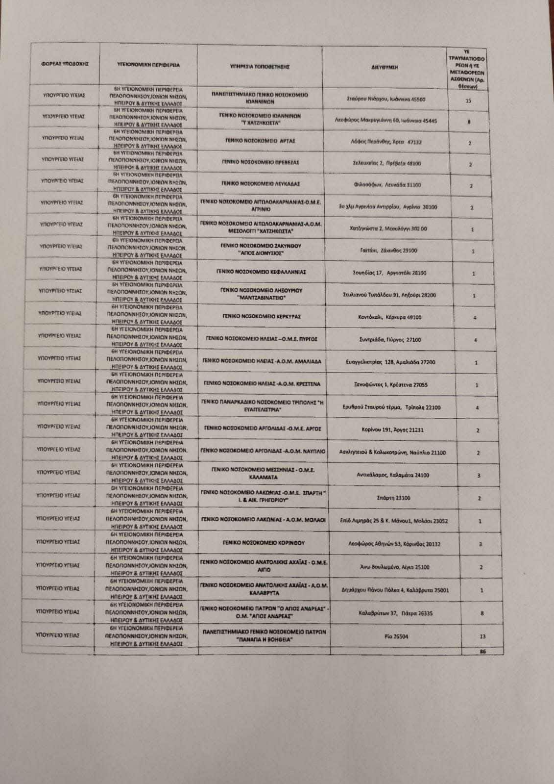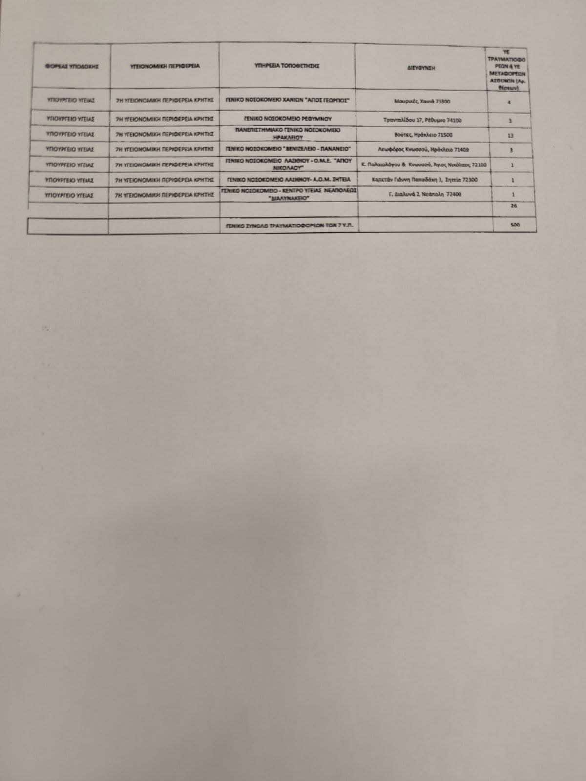Ως προς την κατανομή των 500 θέσεων τραυματιοφορέων, μέσω ΔΥΠΑ ,στα νοσοκομεία :