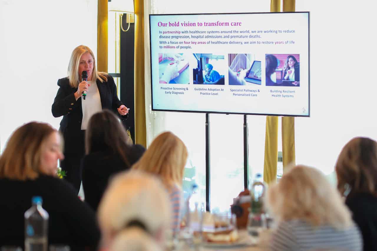 Σε συνάντησή της με εκπροσώπους του Τύπου, η Πρόεδρος και Διευθύνουσα Σύμβουλος της AstraZenecaΕλλάδας και Κύπρου Έλενα Χουλιάρα αναφέρθηκε συνολικά στις δραστηριότητες και τους στόχους της εταιρείας παγκοσμίως και στην Ελλάδα, στην πρωτοπορία της στην έρευνα και την καινοτομία αλλά και στις προκλήσεις που αντιμετωπίζει το εθνικό σύστημα υγείας. Στην εκδήλωση μίλησαν, επίσης, ο Ιατρικός Διευθυντής AstraZeneca Ελλάδας Πέτρος Γαλανάκης και η Corporate & Regulatory AffairsDirector Γιώτα Κοτσεκίδου. Ακολουθούν τα βασικότερα σημεία των ομιλιών.
