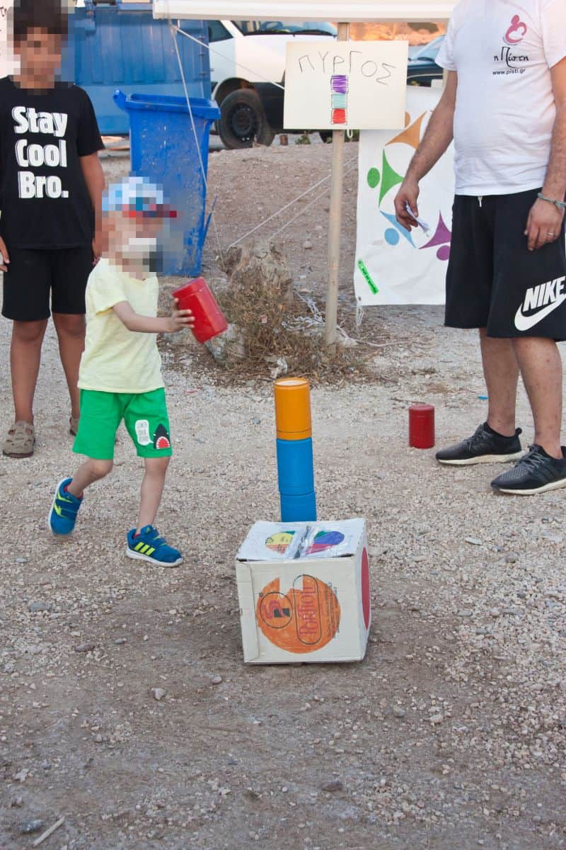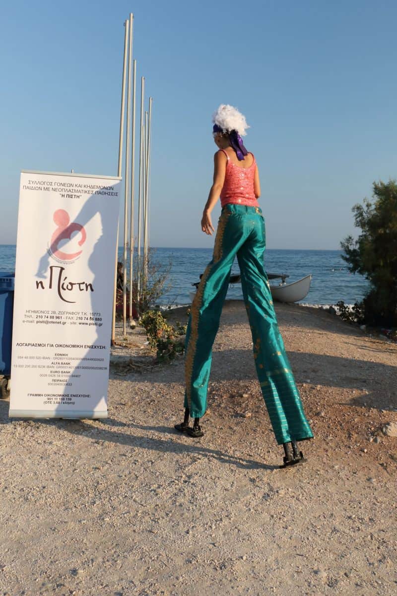 Η εθελοντική ομάδα δράσης «Παιχνίδι στο Πάρκο» έστησε παιχνίδια στην άμμο και απασχόλησε τα παιδιά, που ενθουσιασμένα πήγαιναν από τη μια δραστηριότητα στην άλλη, την ίδια στιγμή που οι ξυλοπόδαροι, ο ταχυδακτυλουργός και οι παιδικοί ήρωες διασκέδαζαν τους μικρούς μας φίλους με την παρουσία και τις δεξιότητές τους. Η εικαστικός Δήμητρα Λαμπρέτσα εντυπωσίασε μικρούς και μεγάλους, δημιουργώντας ένα γλυπτό από άμμο που απεικονίζει το λογότυπο της «ΠΙΣΤΗΣ». Στη συνέχεια τη σκυτάλη πήρε το μουσικό παραδοσιακό σχήμα «ΣΜΙΓΑΔΙ» και ο χορός άρχισε με τη συμμετοχή, προς μεγάλη χαρά όλων, των γονέων και των παιδιών που είχαν τόσο ανάγκη να χορέψουν.