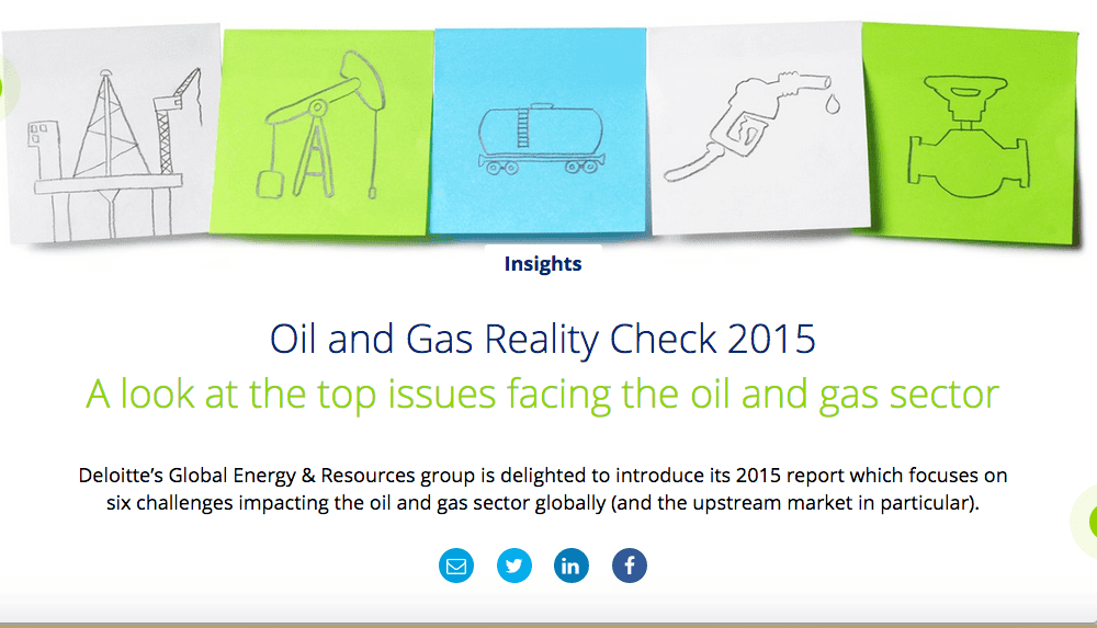 Η κυκλικότητα του κλάδου πετρελαιοειδών και αερίου είναι απίθανο να επηρεάσει τη μακροπρόθεσμη πορεία του κλάδου. Ωστόσο, οι τρέχουσες διακυμάνσεις μπορεί να δώσουν ώθηση σε κάποιες από τις τάσεις οι οποίες έχουν ήδη εμφανιστεί, σύμφωνα με την έκθεση Oil and Gas Reality Check 2015 της Deloitte.