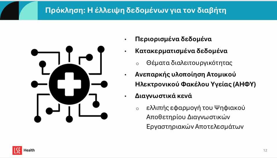 Οι προκλήσεις που αντιμετωπίζουν οι ασθενείς με διαβήτη και το σύστημα υγείας καταγράφηκαν στη μελέτη «Η επιβάρυνση του Διαβήτη και οι Προοπτικές Μεταρρύθμισης: Συμπεράσματα για το Εθνικό Σύστημα Υγείας», η οποία ανατέθηκε από την Πλατφόρμα Διαβήτη του ΣΦΕΕ στο London School of Economics (LSE). Επίσης κατατέθηκαν τεκμηριωμένες προτάσεις πολιτικής μεταρρύθμισης, εμπνευσμένες από διεθνείς βέλτιστες πρακτικές, παρουσίασε ο καθηγητής του LSE Πάνος Καναβός.
