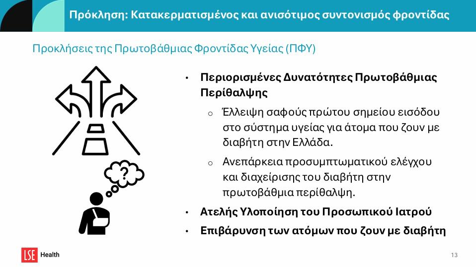 – Διευκόλυνση Ενσωματωμένης Φροντίδας για Άτομα με Διαβήτη: Για να βελτιωθούν τα αποτελέσματα υγείας και να μειωθούν οι νοσηλείες, η Ελλάδα πρέπει να ενισχύσει την ενσωμάτωση της φροντίδας του διαβήτη σε διάφορα επίπεδα του συστήματος υγείας.
