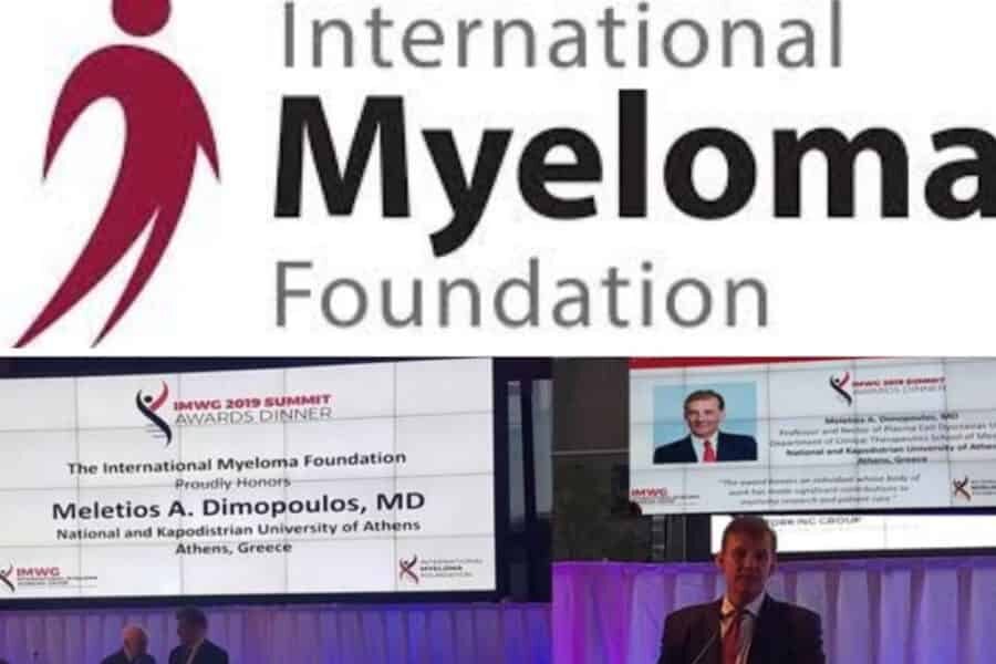 Ιδιαίτερη μνεία χρήζει το γεγονός ότι ο Πρύτανης του Ε.Κ.Π.Α., Μελέτιος-Αθανάσιος Δημόπουλος αποτελεί έναν από τους σημαντικότερους γιατρούς-μελετητές της νόσου. Συγκεκριμένα, με τις δράσεις του έχει οδηγήσει στην καθιέρωση πολλών φαρμάκων για το πολλαπλούν μυέλωμα.