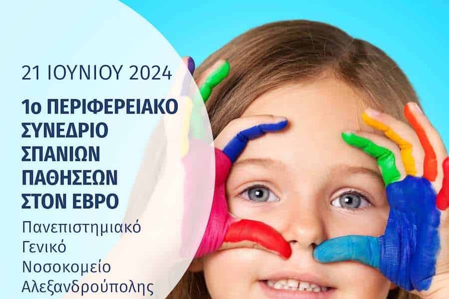 Σε μια νέα προσπάθεια για ενημέρωση, επιμόρφωση και ευαισθητοποίηση του κοινού και των Επαγγελματιών Υγείας για τα Σπάνια Νοσήματα και στην περιφέρεια η Ένωση Σπανίων Ασθενών Ελλάδος (Ε.Σ.Α.Ε.), σε συνεργασία με τον Σύλλογο  Καρκινοπαθών & Σπανίων Παθήσεων Ν. Έβρου «Μαζί για Ζωή» και την Περιφέρεια Ανατολικής Μακεδονίας και Θράκης, διοργανώνει το 1ο Περιφερειακό Συνέδριο Σπανίων Παθήσεων.