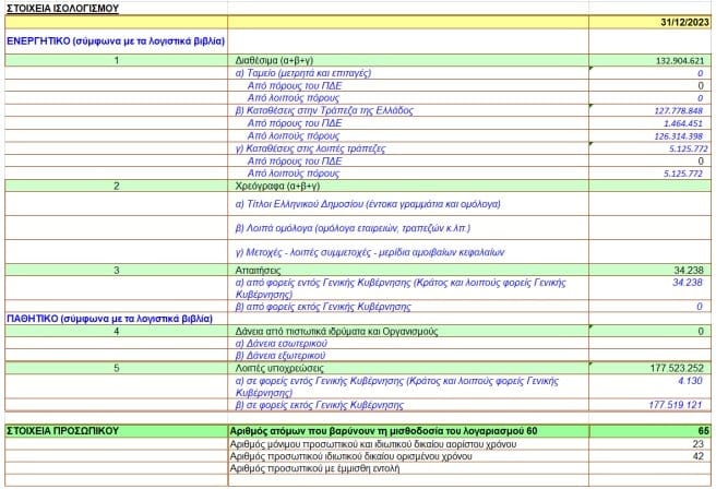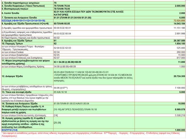 Τα βασικά οικονομικά μεγέθη των οποίων, σύμφωνα με το ισχύον Ευρωπαϊκό Σύστημα Λογαριασμών – ΕSA, σε ευρώ, έχουν ως εξής: