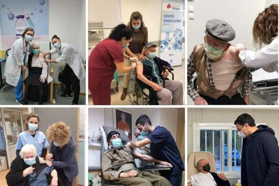 Παρά τις δυσκολίες και τα κινητικά προβλήματα οι υπερήλικες άνω των 95 ετών προσήλθαν στον εμβολιασμό ηλικιωμένοι στα Κύθηρα, την Σάμο, την Χίο την Σαντορίνη για να θωρακιστούν έναντι της πανδημίας COVID-19. Οι ηλικιωμένοι φωτογραφήθηκαν μαζί με το νοσηλευτικό προσωπικό και μάλλον χαμογέλασαν κάτω από την μάσκα.