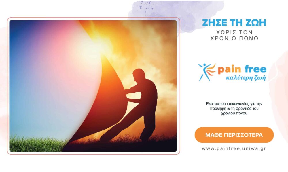 Με σύνθημα «Ζήσε τη ζωή χωρίς τον χρόνιο πόνο» υλοποιείται η πανελλαδική εκστρατεία «painfree – καλύτερη ζωή» του Τμήματος Πολιτικών Δημόσιας Υγείας του Πανεπιστημίου Δυτικής Αττικής. Η καμπάνια υποστηρίζεται από την φαρμακευτική εταιρεία ΒΙΑΝΕΞ.