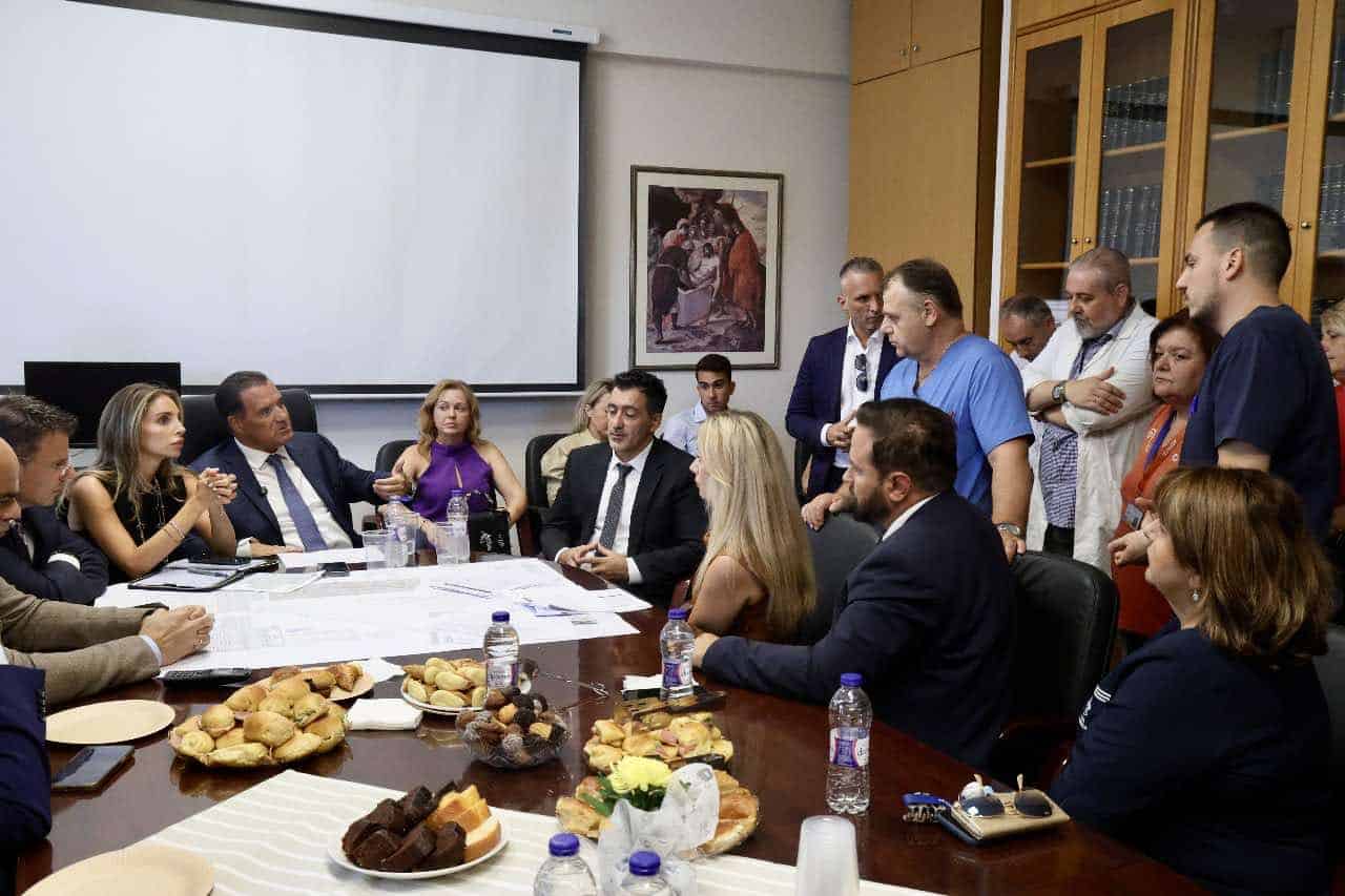 Ο υπουργός Υγείας Άδωνις Γεωργιάδης, συνοδευόμενος από τον Υφυπουργό Δημήτρη Βαρτζόπουλο και τη Γενική Γραμματέα