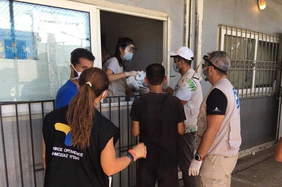 Σε συνέργεια του ΕΟΔΥ με την οργάνωση Γιατροί του Κόσμου- Ελλάδας διανεμήθηκαν σήμερα στο Κέντρο Υποδοχής και Ταυτοποίησης Σάμου συνολικά 4.100 σετ υγιεινής.