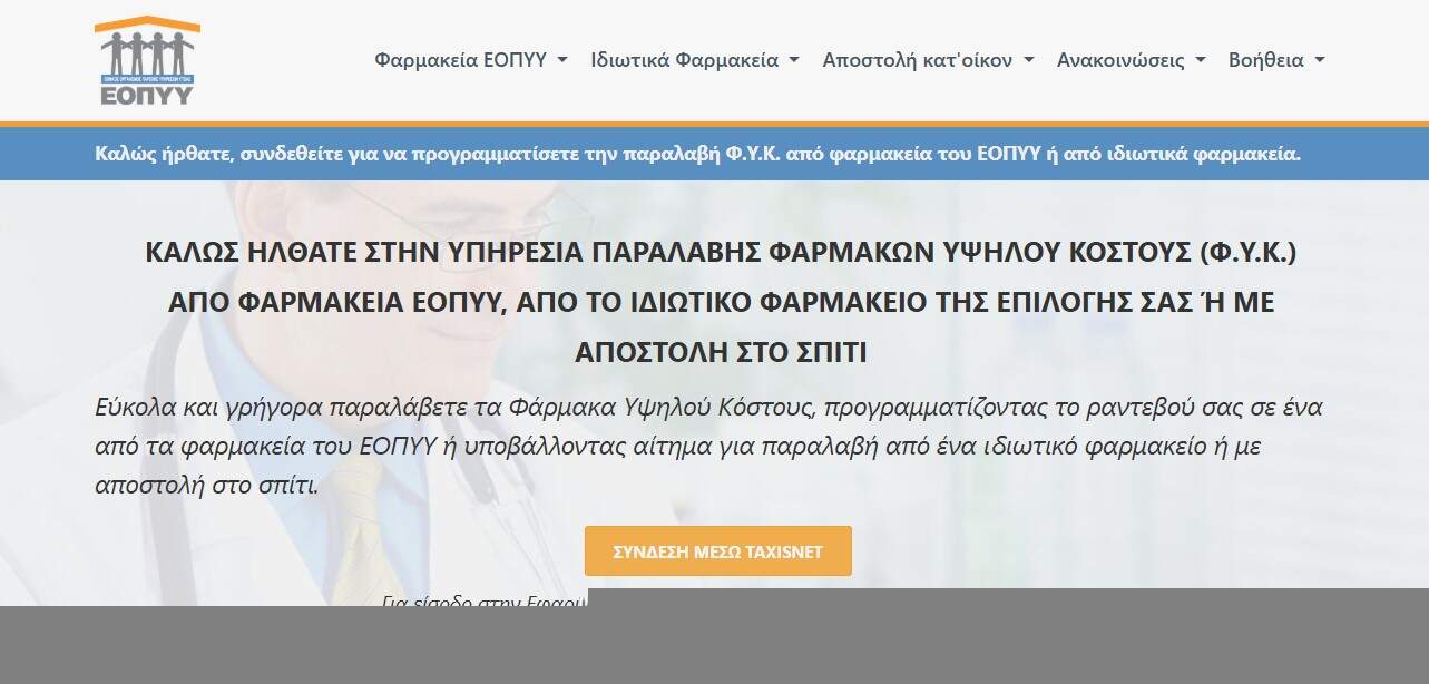 Αναλυτικές οδηγίες εξέδωσε ο ΕΟΠΥΥ προς τους δικαιούχους ασφαλισμένους Φαρμάκων Υψηλού Κόστους προκειμένου να αιτηθούν την παραλαβή κατ’ οίκον. Ο ΕΟΠΥΥ ανακοίνωσε ότι κάθε ασθενής μπορεί να λαμβάνει τα φάρμακα που χορηγούνται από τα Φαρμακεία ΕΟΠΥΥ στον χώρο που επιθυμεί συμπληρώνοντας κωδικούς ΤΑΧΙSNET και ΑΜΚΑ με δύο απλά βήματα.