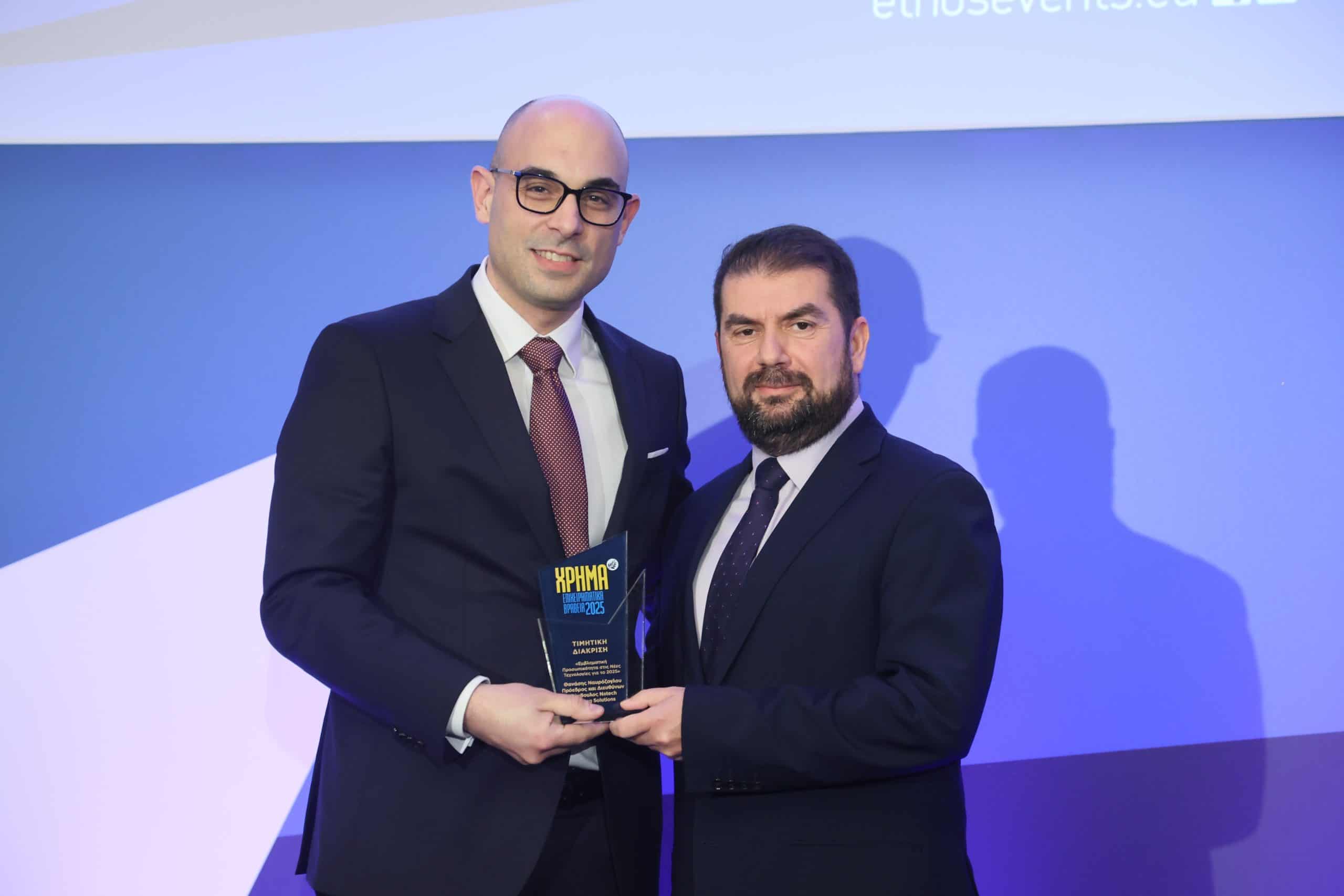 Την τιμητική διάκριση «Εμβληματική Προσωπικότητα στις Νέες Τεχνολογίες για το 2025» έλαβε ο κ. Θανάσης Ναυρόζογλου, Πρόεδρος και Διευθύνων Σύμβουλος της Natech Banking Solutions.