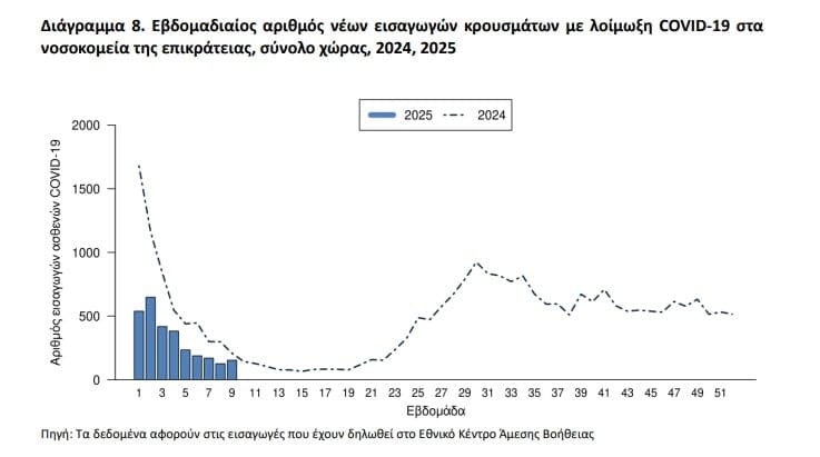 Εβδομαδιαία Έκθεση: 153 νέες εισαγωγές με covid