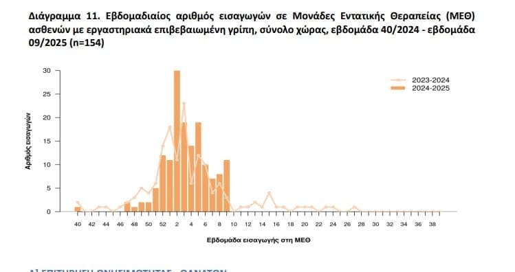 επιβεβαιωμένης γρίπης με νοσηλεία σε ΜΕΘ που αφορούσαν προηγούμενες εβδομάδες. Συνολικά, από την εβδομάδα