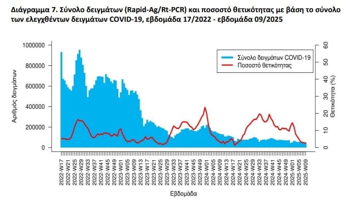 ✓ Από την εβδομάδα 40/2024 έως και την εβδομάδα 09/2025, μεταξύ 2.926 δειγμάτων (προέλευσης Sentinel κοινότητας,