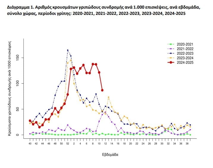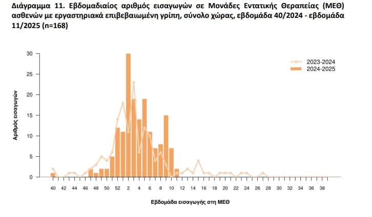 11/2025 έχουν καταγραφεί 168 εργαστηριακά επιβεβαιωμένα κρούσματα γρίπης με νοσηλεία σε ΜΕΘ και 57 θάνατοι από