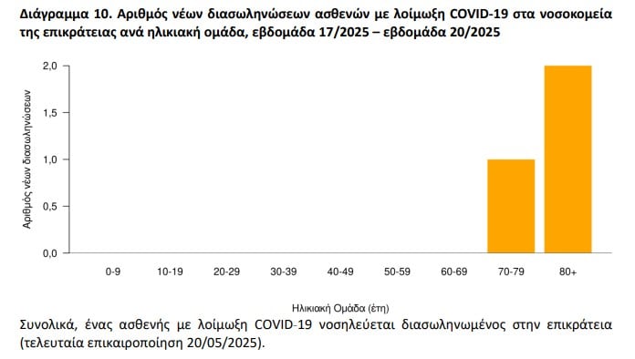 ✓ Κατά την εβδομάδα 20/2025 καταγράφηκε ένα νέο σοβαρό κρούσμα με νοσηλεία σε ΜΕΘ και τρείς νέοι θάνατοι από