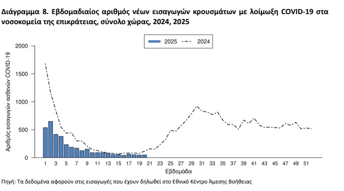 νοσηλεία σε ΜΕΘ που αφορούσε προηγούμενη εβδομάδα. Από την εβδομάδα 01/2024 έως την εβδομάδα 20/2025, οι