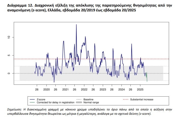 προηγούμενες τέσσερις εβδομάδες ήταν δύο. Από την εβδομάδα 01/2024 μέχρι την εβδομάδα 20/2025 οι