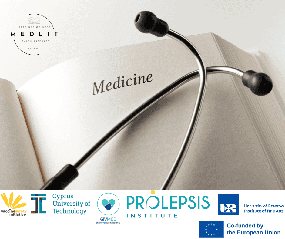 Το καινοτόμο project με τίτλο MedLit υλοποιείται με στόχο την ορθή ενημέρωση και βελτίωση της γνώσης γύρω από την ασφαλή χρήση φαρμάκων και εμβολίων. Για το εγχείρημα συνένωσαν τις δυνάμεις τους το Vaccine Safety Initiative από τη Γερμανία, το Τεχνολογικό Πανεπιστήμιο Κύπρου, το GIVMED και το Ινστιτούτο Prolepsis από την Ελλάδα και το Πανεπιστήμιο Rzeszow από την Πολωνία.