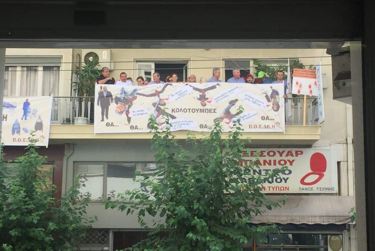 Η επίσκεψη του Πρωθυπουργού στο Υπουργείο Υγείας τα είχε όλα. Ισχυρή αστυνομική παρουσία, αυξημένα μέτρα ασφαλείας, συνθήματα, χειροκροτήματα, χαμόγελα και εντάσεις. Ο Αλέξης Τσίπρας έφθασε στην Αριστοτέλους με περίπου μισή ώρα καθυστέρηση. Τον υποδέχθηκε σύσσωμη η ηγεσία του Υπουργείου Υγείας, ενώ τα χειροκροτήματα που ακούστηκαν στην είσοδο του κτηρίου έρχονταν σε αντίθεση με τα συνθήματα που φώναζαν συγκεντρωμένοι της ΠΟΕΔΗΝ… από το μπαλκόνι των γραφείων της Ομοσπονδίας στην απέναντι πολυκατοικία.