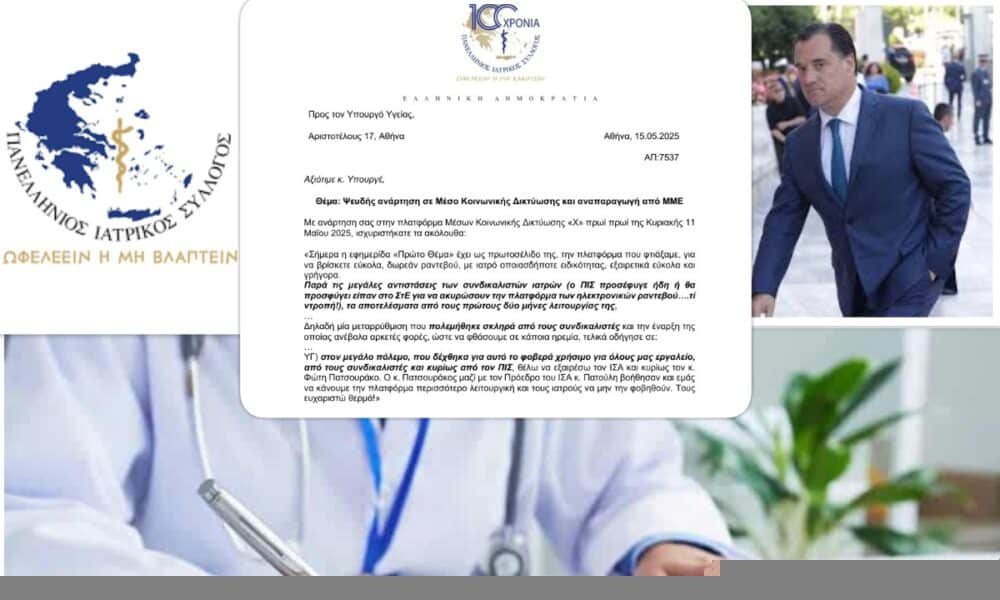 Μαΐου 2025, με αφορμή δημοσίευμα εφημερίδα «Πρώτο Θέμα» και το οποίο αναφέρεται στην πλατφόρμα για την πρόσβαση των πολιτών σε δωρεάν ραντεβού με ιατρούς. Στην ανάρτηση ο υπουργός σχολιάζει μεταξύ άλλων: «Παρά τις μεγάλες αντιστάσεις των συνδικαλιστών ιατρών (ο ΠΙΣ προσέφυγε ήδη ή θα προσφύγει είπαν στο ΣτΕ για να ακυρώσουν την πλατφόρμα των ηλεκτρονικών ραντεβού….τί ντροπή!), τα αποτελέσματα από τους πρώτους δύο μήνες λειτουργίας της…»