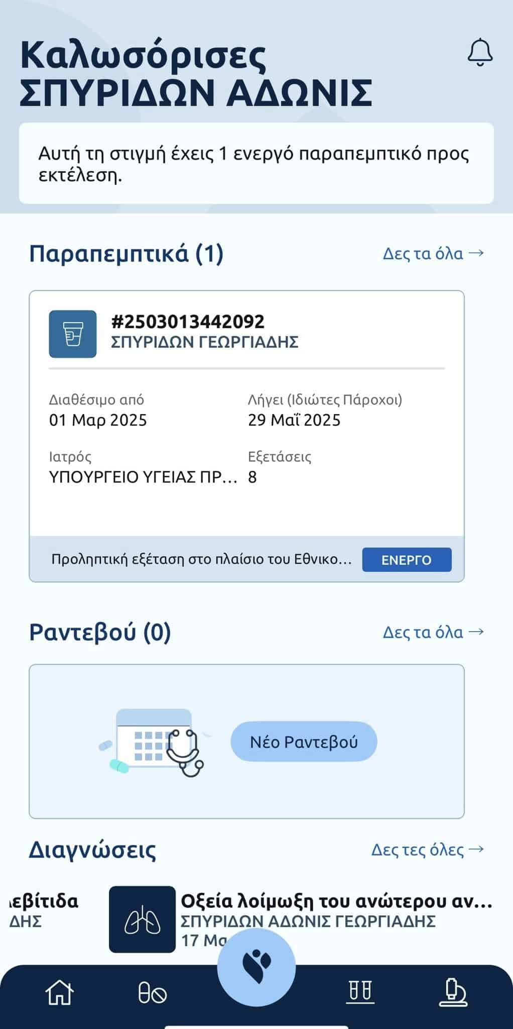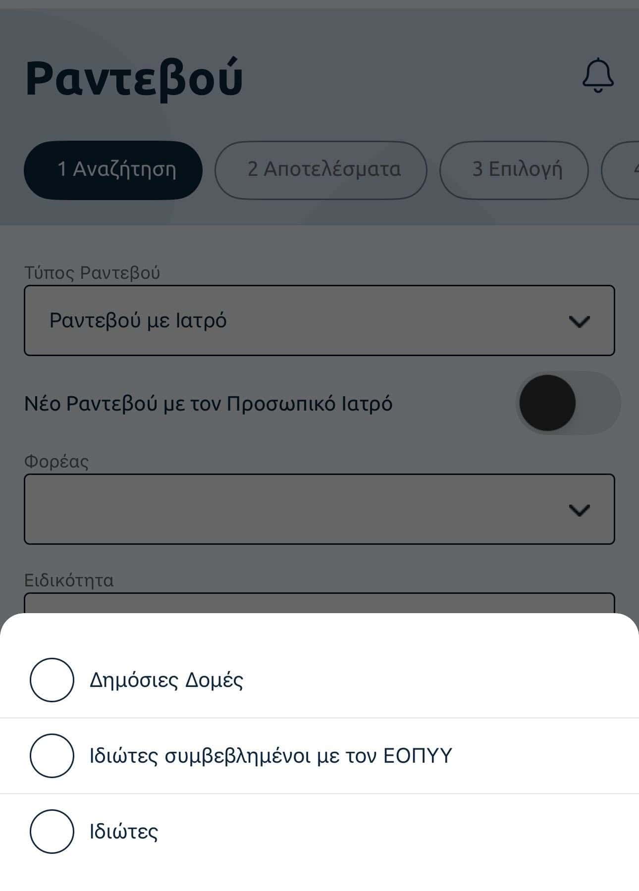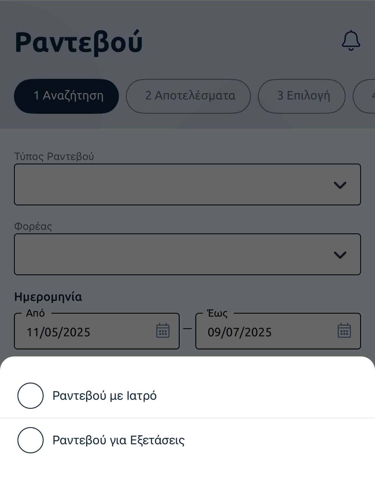 Επιλογή «Ραντεβού με Ιατρό ή για Διαγνωστικές εξετάσεις»