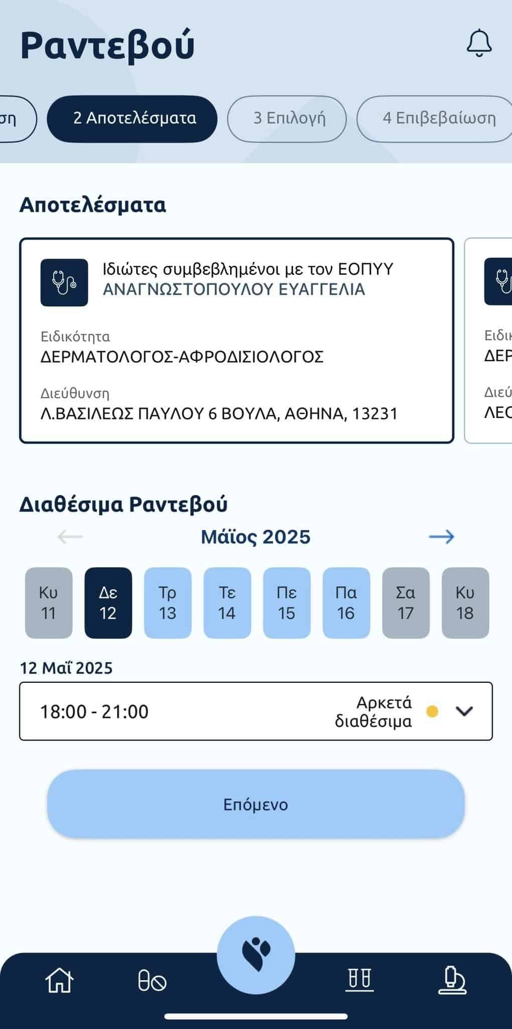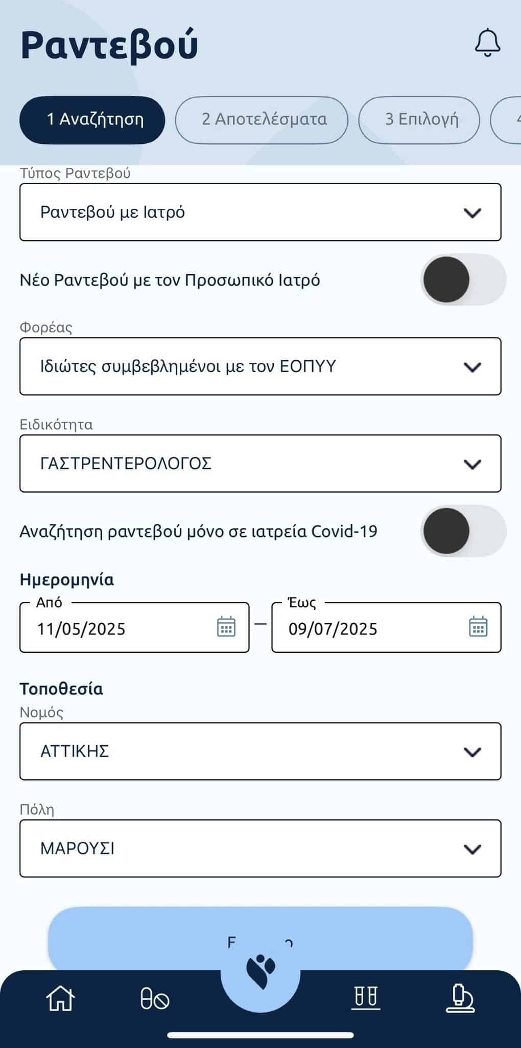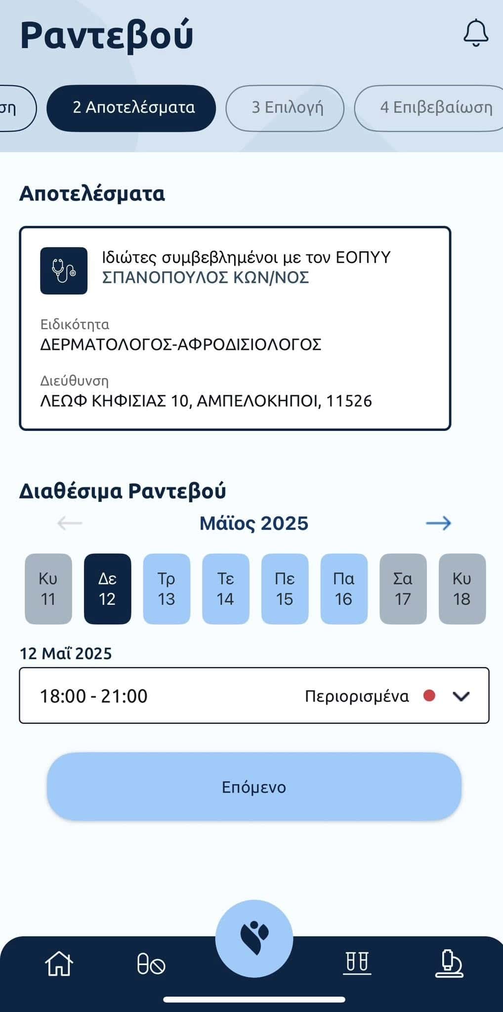 Επιλογή «Ραντεβού με Ιατρό ή για Διαγνωστικές εξετάσεις»