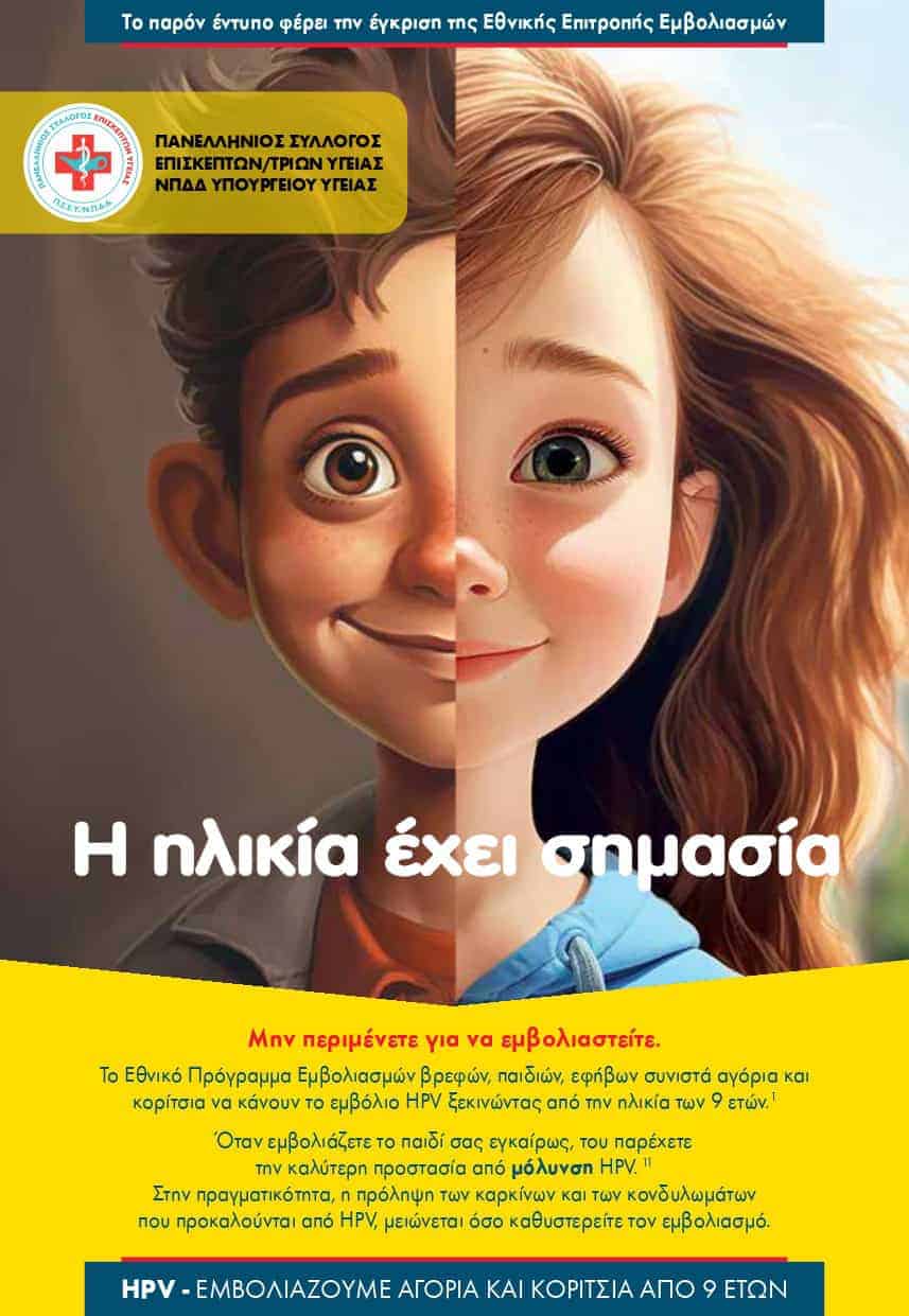 • σε αγόρια και κορίτσια ηλικίας 9-11 ετών, Σε περίπτωση που ο εμβολιασμός δεν γίνει στη συνιστώμενη ηλικία, μπορεί να γίνει αναπλήρωση έως την ηλικία των 18 ετών. Επισημαίνεται ότι το εμβόλιο HPV αποζημιώνεται πλήρως σε αγόρια και κορίτσια ηλικίας 15-18 ετών μέχρι 31.12.2025 .