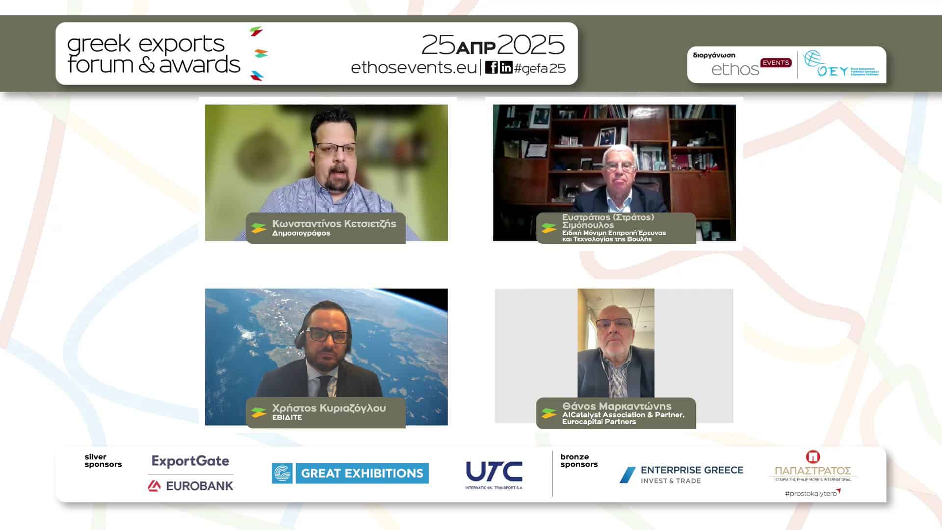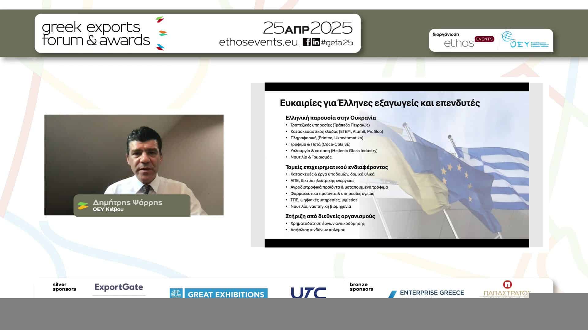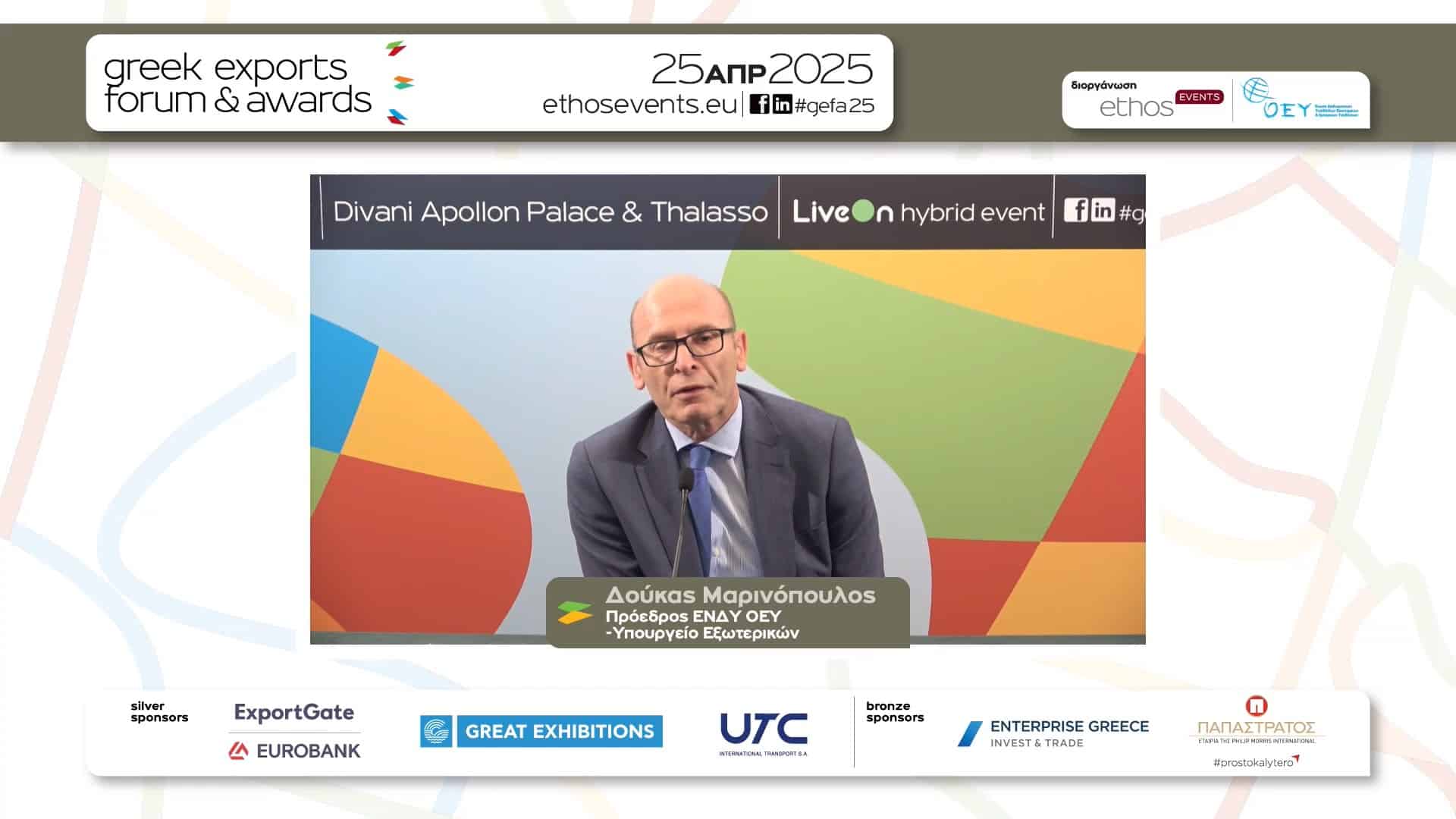 Τις πολιτικές, τα «εργαλεία» και τις δράσεις που θα οδηγήσουν στην περαιτέρω ανάπτυξη των ελληνικών εξαγωγών, σε μια χρονιά κατά την οποία οι γεωπολιτικές συγκρούσεις, οι εμπορικοί πόλεμοι και η νέα δασμολογική πολιτική από την πλευρά των ΗΠΑ δοκιμάζουν τις αντοχές τους, ανέδειξαν τα Greek Exports Forum & Awards 2025, που πραγματοποιήθηκαν, με πολύ μεγάλη συμμετοχή, την Παρασκευή 25 Απριλίου 2025.