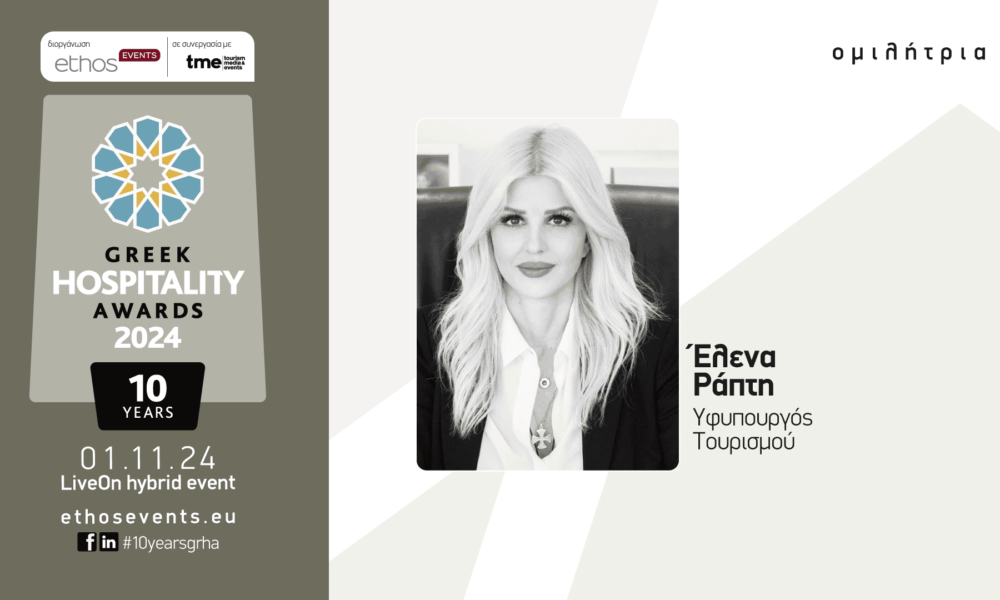 Τα Greek Hospitality Awards, η μεγάλη γιορτή του ελληνικού τουρισμού επιστρέφει για να αναδείξει τα ελληνικά ξενοδοχεία. Τα Greek Hospitality Awards θα βραβεύσουν τους κορυφαίους του ελληνικού τουριστικού προϊόντος που με τη δουλειά τους και την απαράμιλλης ποιότητας υπηρεσίες τους, κρατάνε την Ελλάδα στις πρώτες θέσεις της τουριστικής βιομηχανίας παγκοσμίως.