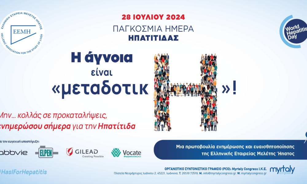 Πρωτοβουλία ενημέρωσης και ευαισθητοποίηση έλαβε η Ελληνική Εταιρεία Μελέτης Ήπατος – Ε.Ε.Μ.Η. , με κεντρικό σύνθημα «Η άγνοια είναι μεταδοτικΗ! Μην… κολλάς σε προκαταλήψεις, ενημερώσου σήμερα για την Ηπατίτιδα». Η δράση υλοποιείιται με αφορμή την Παγκόσμια Ημέρα Ηπατίτιδας / World Hepatitis Day, όπως έχει οριστεί η 28η Ιουλίου.