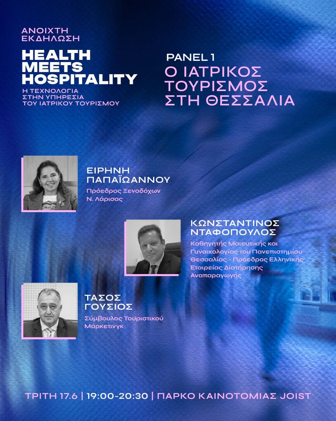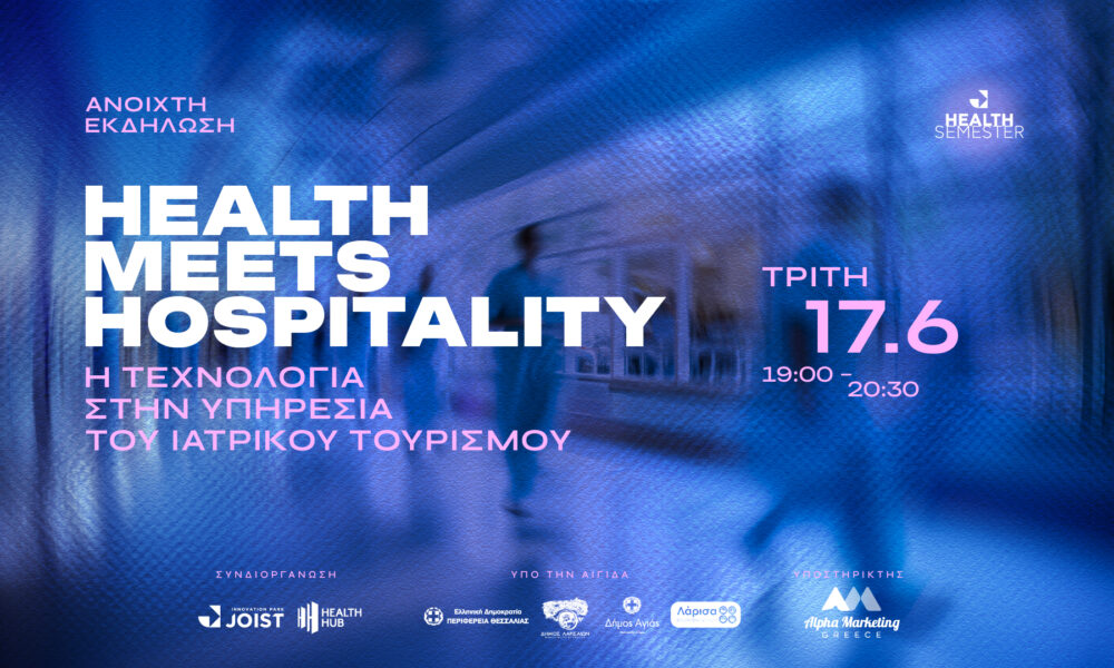 Με φόντο τις αυξανόμενες προοπτικές του ιατρικού τουρισμού στην Ελλάδα και ιδιαίτερα στη Θεσσαλία, το Πάρκο Καινοτομίας JOIST και ο Ευρωπαϊκός Κόμβος Ψηφιακής Καινοτομίας Health Hub συνδιοργανώνουν την εκδήλωση Health Meets Hospitality: Η Τεχνολογία στην Υπηρεσία του Ιατρικού Τουρισμού. Η εκδήλωση θα πραγματοποιηθεί την Τρίτη 17 Ιουνίου και ώρα 19:00, στο JOIST Innovation Park, στη Λάρισα.