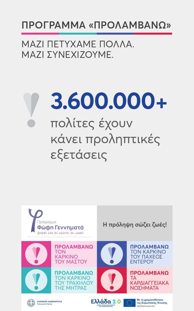 Με έμφαση στη σημασία της Πρόληψης και της έγκαιρης διάγνωσης, η αναπληρώτρια υπουργός Υγείας, Ειρήνη Αγαπηδάκη, ανέδειξε μέσω ανάρτησής της τον ρόλο του προγράμματος «ΠΡΟΛΑΜΒΑΝΩ» στη διαμόρφωση μιας νέας κουλτούρας υγείας στη χώρα.