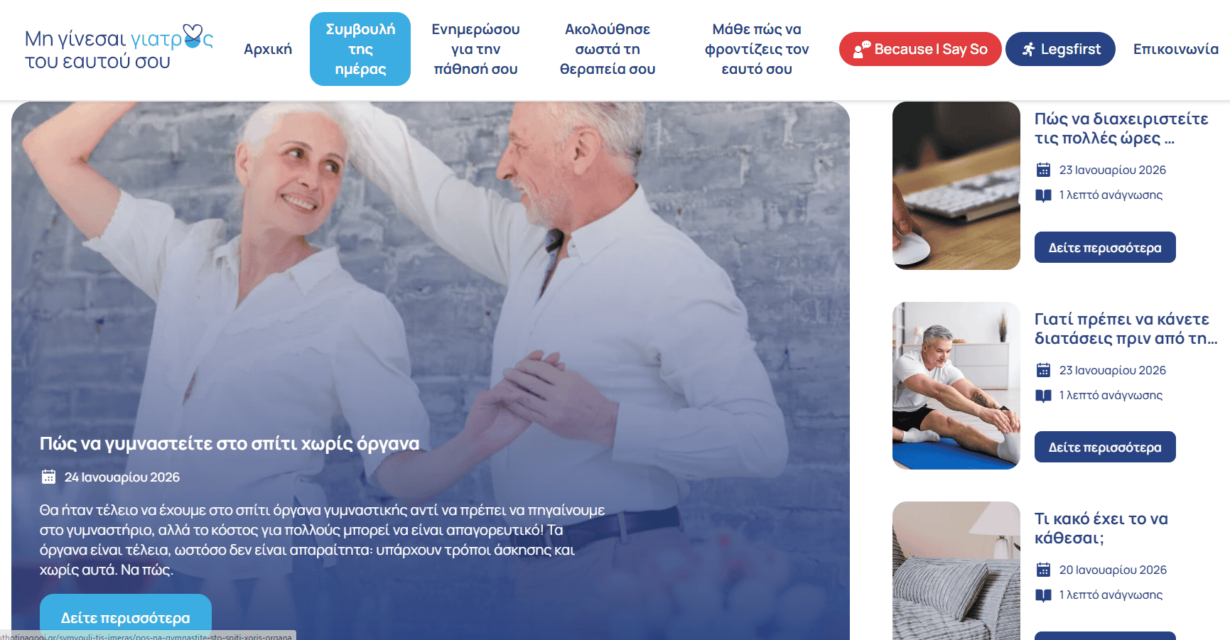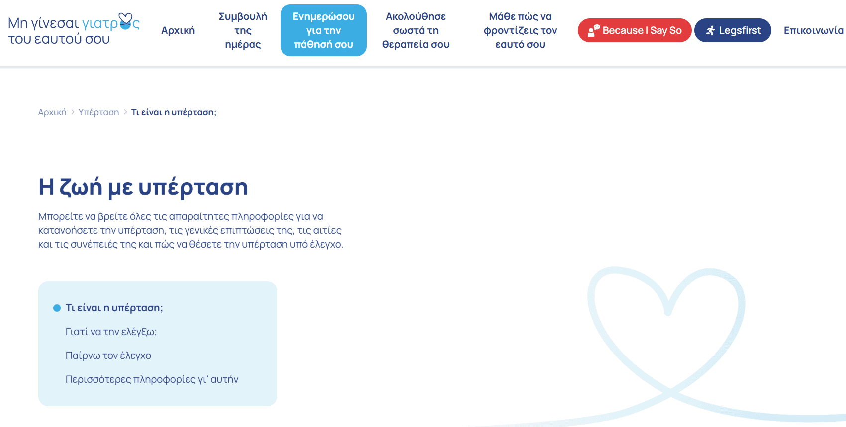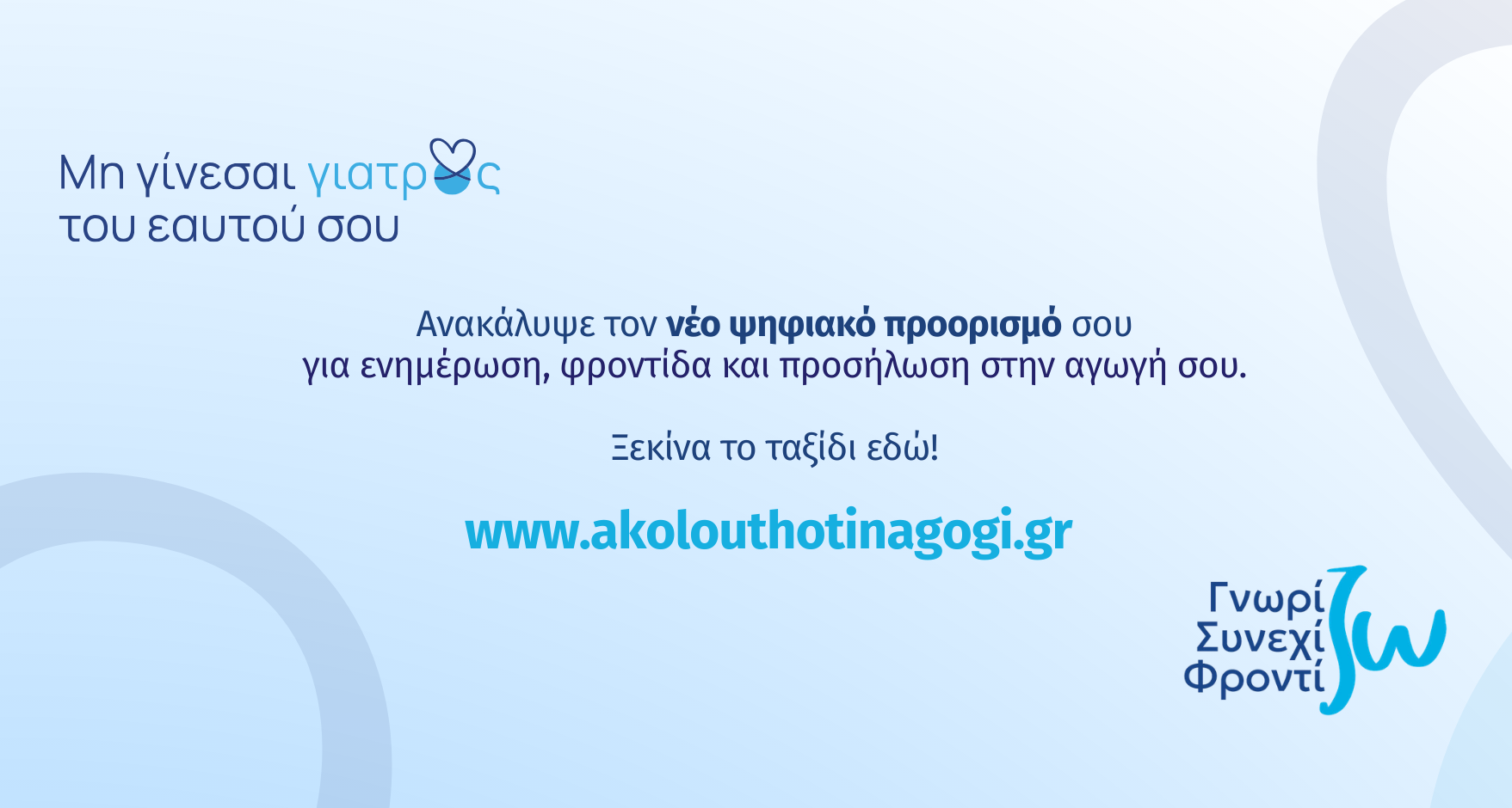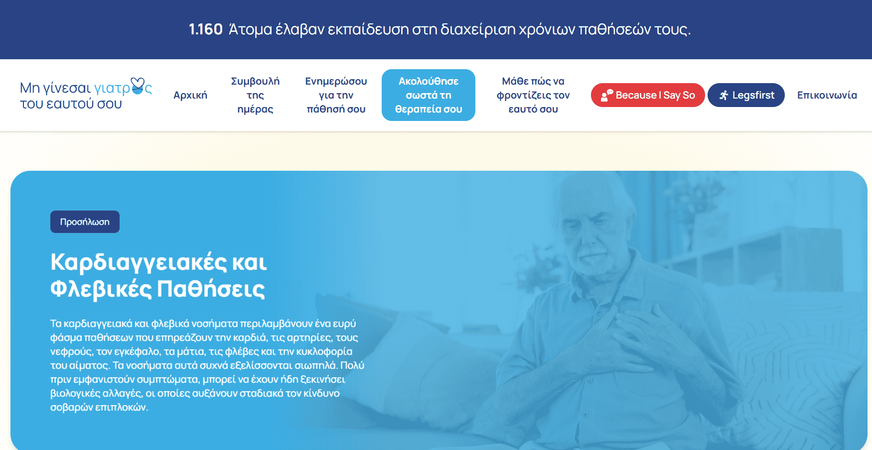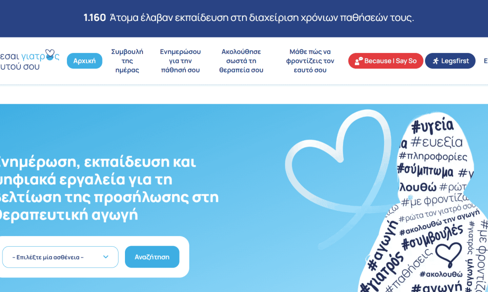 Πρόκειται για μια σύγχρονη ψηφιακή πλατφόρμα για ασθενείς με χρόνια νοσήματα. Η νέα πλατφόρμα αποτελεί εξέλιξη της πολυετούς Εκστρατείας Ευαισθητοποίησης «Μη γίνεσαι γιατρός του εαυτού σου» και απευθύνεται σε ασθενείς που ζουν με καρδιαγγειακά και άλλα χρόνια νοσήματα. Η Servier Hellas επενδύει σε ένα εργαλείο που συνδυάζει επιστημονική εγκυρότητα, εύχρηστη πλοήγηση και πρακτικές οδηγίες, με στόχο να ενισχύσει την αυτονομία των ασθενών και να βελτιώσει τη μακροχρόνια διαχείριση της νόσου.
