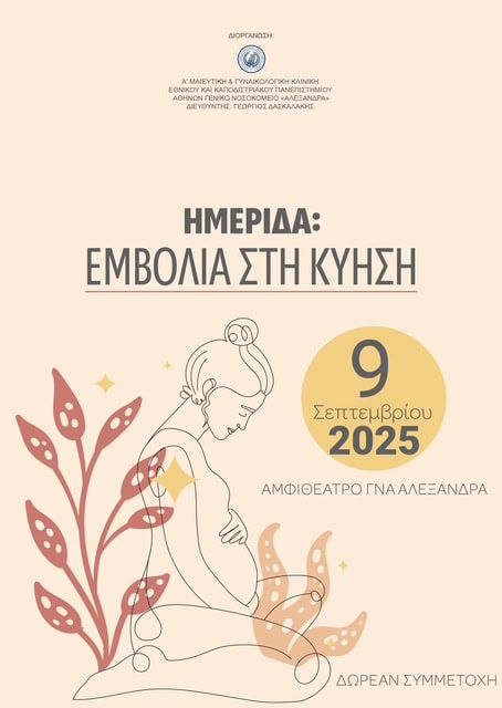 Η Πανεπιστημιακή Κλινική του Νοσοκομείου «Αλεξάνδρα» διοργανώνει ημερίδα με θέμα τον εμβολιασμό κατά την εγκυμοσύνη, την Τρίτη 9 Σεπτεμβρίου 2024, από τις 12:00 έως τις 16:00, στο Αμφιθέατρο του Νοσοκομείου. Η εκδήλωση απευθύνεται σε επαγγελματίες υγείας και πραγματοποιείται με αφορμή τη λειτουργία του πρώτου εξειδικευμένου Ιατρείου Εμβολιασμού στην Κύηση στη χώρα μας.