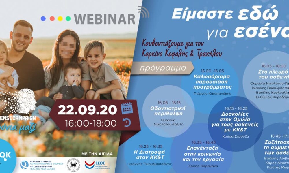 Διαδικτυακή επιστημονική ημερίδα διοργανώνεται στο πλαίσιο διεθνούς εκστρατεία ενημέρωσης και ευαισθητοποίησης για τον Καρκίνο Κεφαλής και Τραχήλου, στην οποία συμμετέχει και η Ελληνική Ομοσπονδία Καρκίνου.