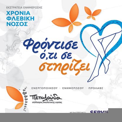 Ο Σύλλογος Σκελετικής Υγείας «Πεταλούδα» αρχίζει τον δεύτερο κύκλο της καμπάνιας πρόληψης και ευαισθητοποίησης του κοινού για την χρόνια φλεβική νόσο. Η καμπάνια έχει τίτλο «Φρόντισε ότι σε στηρίζει!».