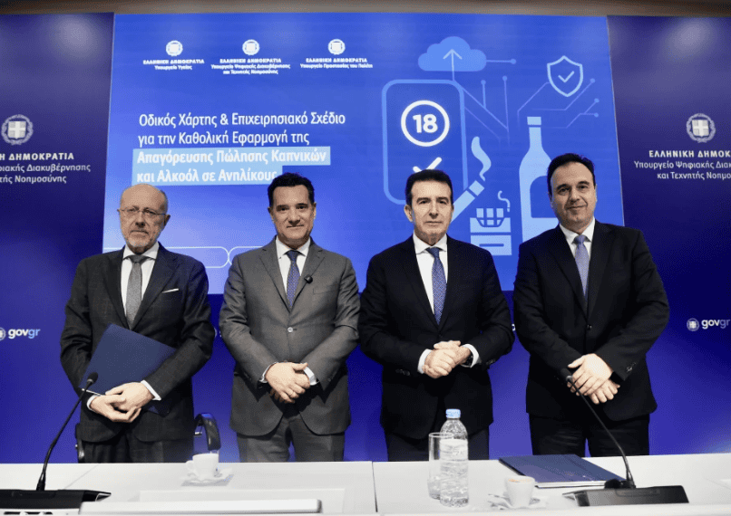 Σε μια συντονισμένη κυβερνητική πρωτοβουλία που σηματοδοτεί αλλαγή εποχής για τη δημόσια υγεία, τα Υπουργεία Υγείας, Ψηφιακής Διακυβέρνησης & Τεχνητής Νοημοσύνης και Προστασίας του Πολίτη παρουσίασαν το ολοκληρωμένο σχέδιο για την καθολική εφαρμογή της απαγόρευσης πώλησης καπνικών προϊόντων και αλκοόλ σε ανηλίκους. Η νέα δέσμη μέτρων συνδυάζει αυστηρό θεσμικό πλαίσιο, ψηφιακές λύσεις και ενισχυμένη εποπτεία της αγοράς.