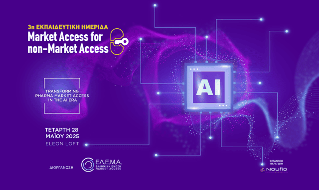 Η εκδήλωση με τίτλο «Τransforming Pharma Market Access in the AI era» θα πραγματοποιηθεί την Τετάρτη 28 Μαΐου 2025, στο Eleon Loft. Στόχος των διοργανωτών είναι η πλήρη ενημέρωση για τη διαδικασία πρόσβασης των ασθενών στις θεραπείες τους και το νομοθετικό πλαίσιο που ρυθμίζει την κυκλοφορία φαρμακευτικών προϊόντων.