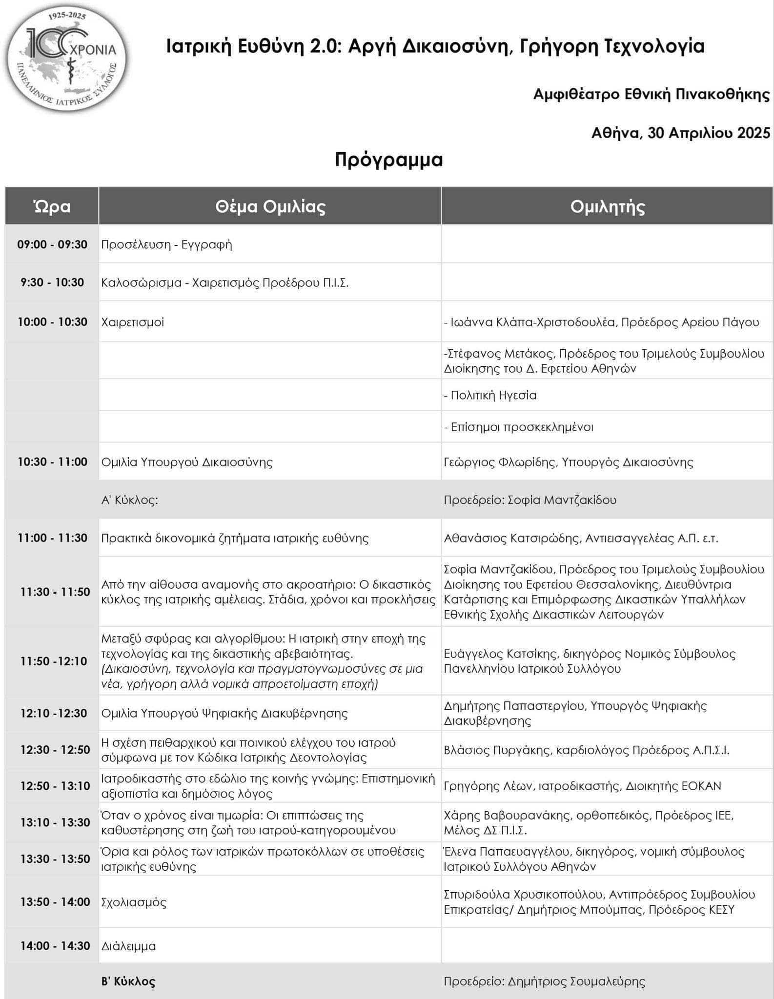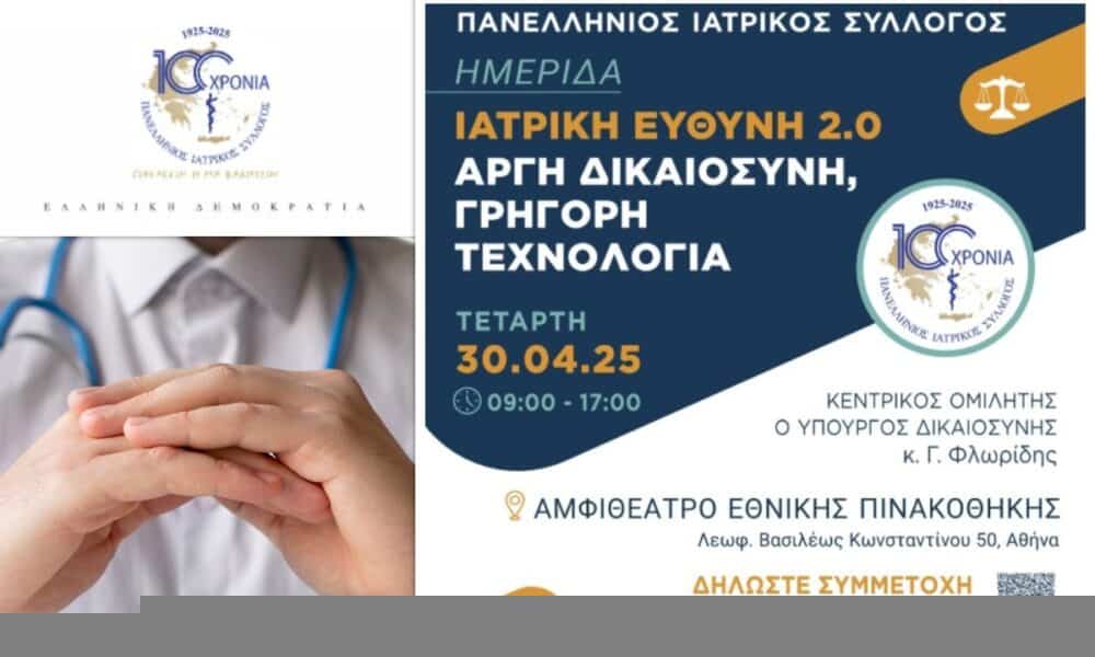 Ο Πανελλήνιος Ιατρικός Σύλλογος διοργανώνει επιστημονική ημερίδα για την Ιατρική Ευθύνη στο πλαίσιο του εορτασμού των 100 χρόνων από την ίδρυση του.